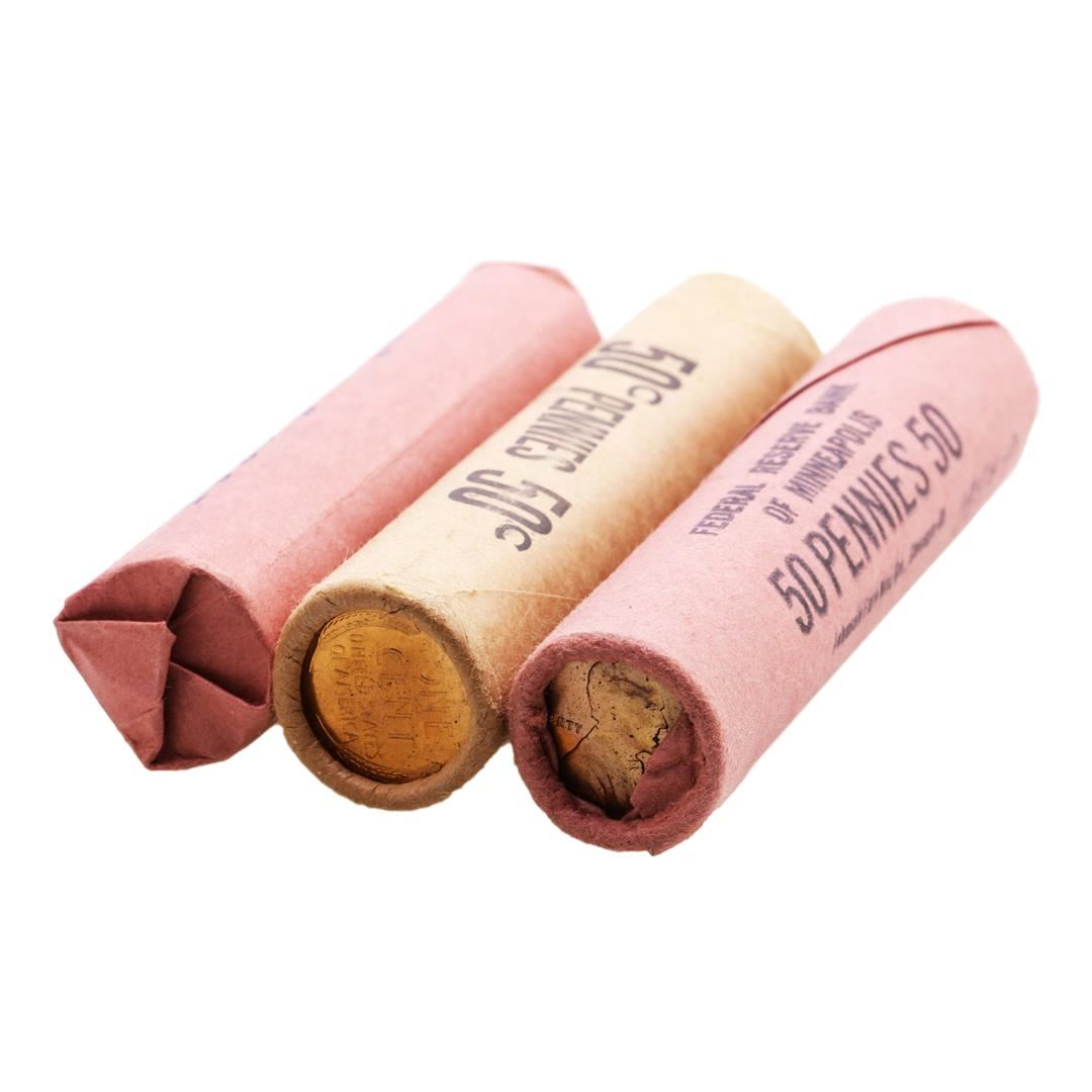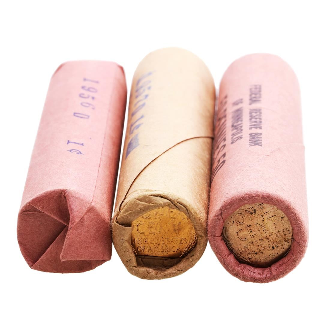 Lot of 1956-D to 1958-D (50) Brilliant Uncirculated Lincoln Wheat Cent Coin Rolls