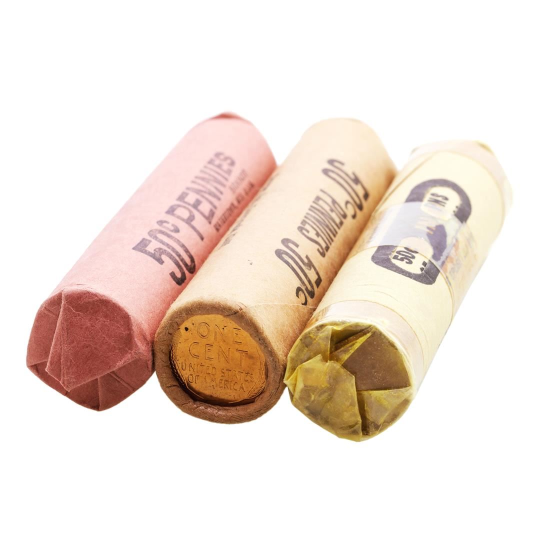 Lot of 1956-D to 1958-D (50) Brilliant Uncirculated Lincoln Wheat Cent Coin Rolls