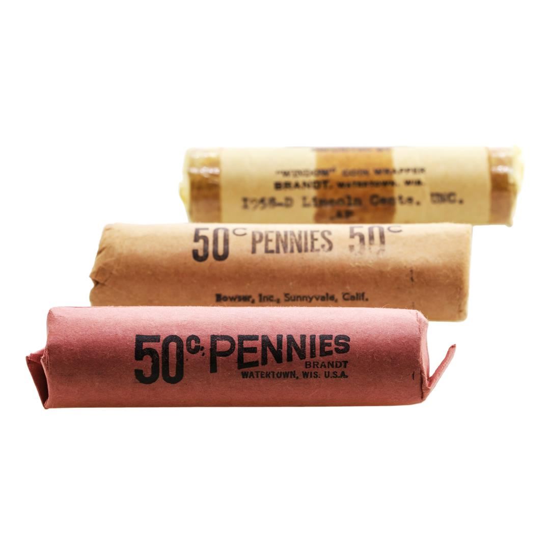 Lot of 1956-D to 1958-D (50) Brilliant Uncirculated Lincoln Wheat Cent Coin Rolls