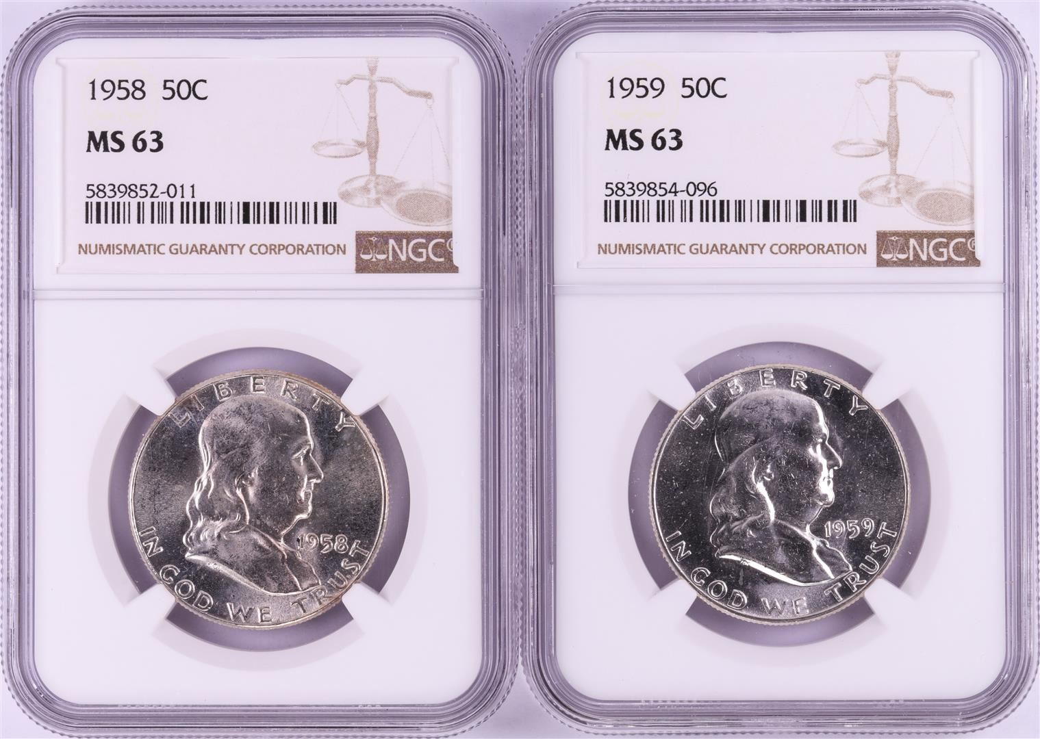 One Lot of 1958-1959 Half Dollar Coins NGC MS63. NGC Certified.