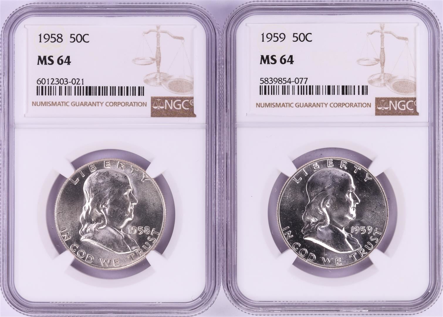 One Lot of 1958-1959 Half Dollar Coins NGC MS64. NGC Certified.