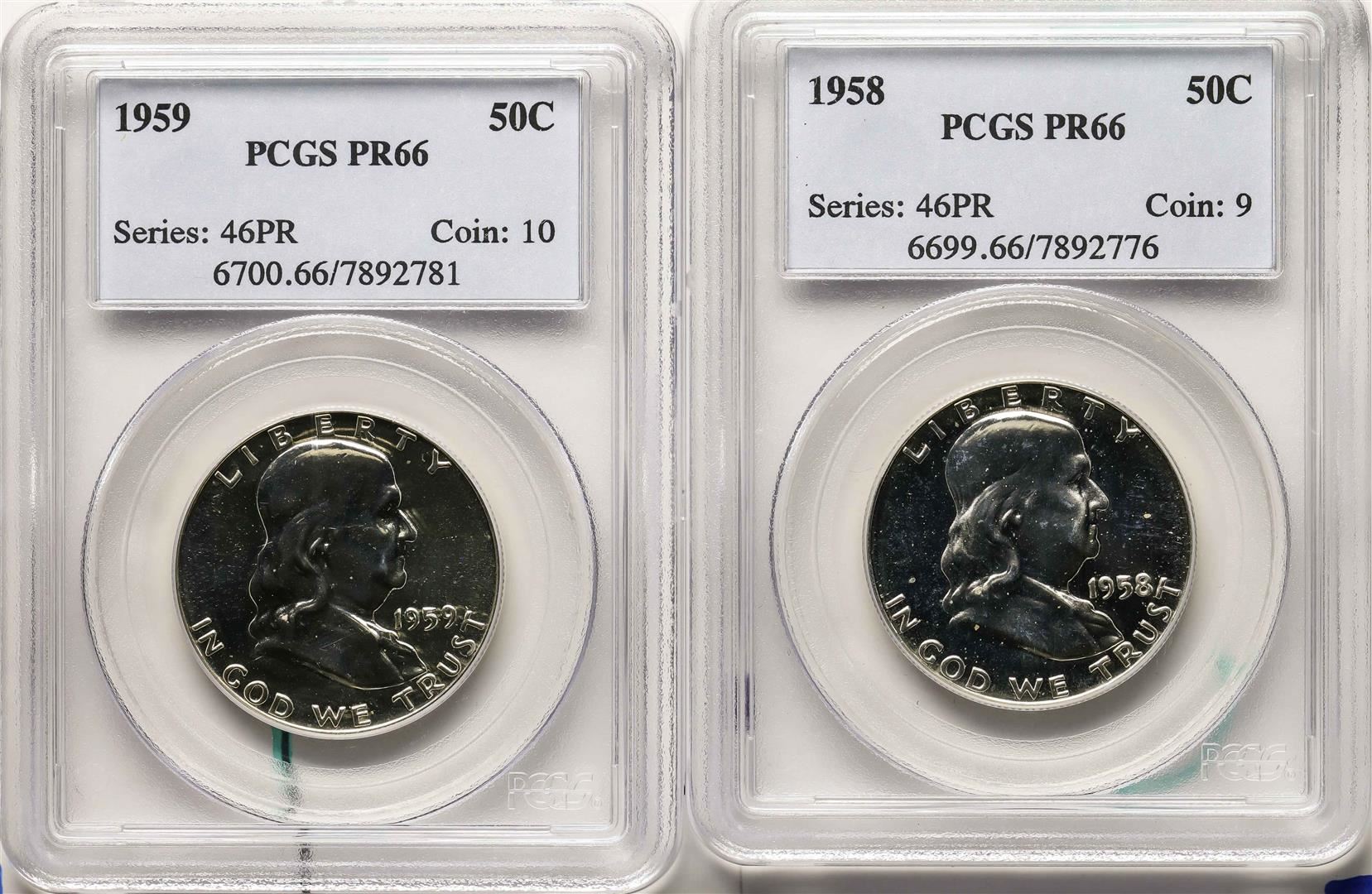 One Lot of 1958-1959 Proof Franklin Half Dollar Coins PCGS PR66. PCGS Graded.