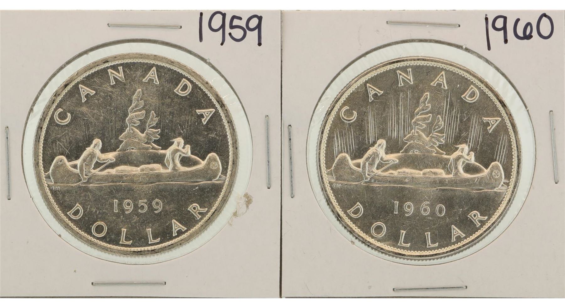 One Lot of 1959-1960 $1 Canada Silver Dollar Coins.