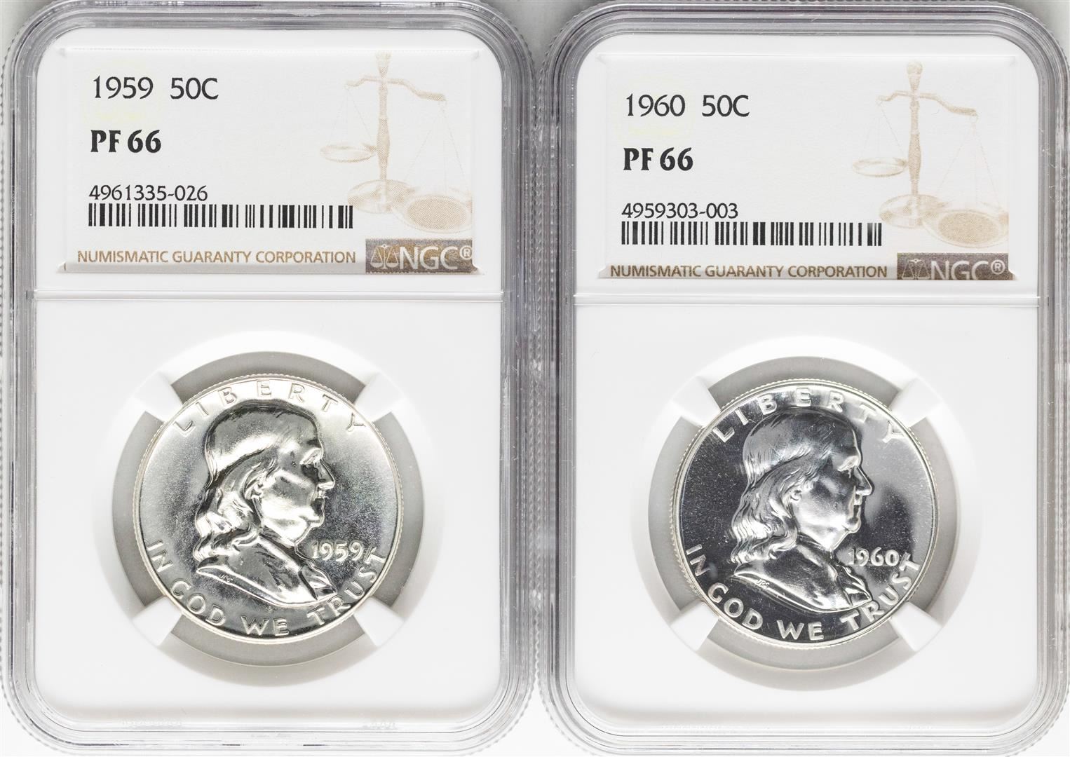 One Lot of 1959 & 1960 Franklin Half Dollar Coins NGC PF66. NGC Certified.