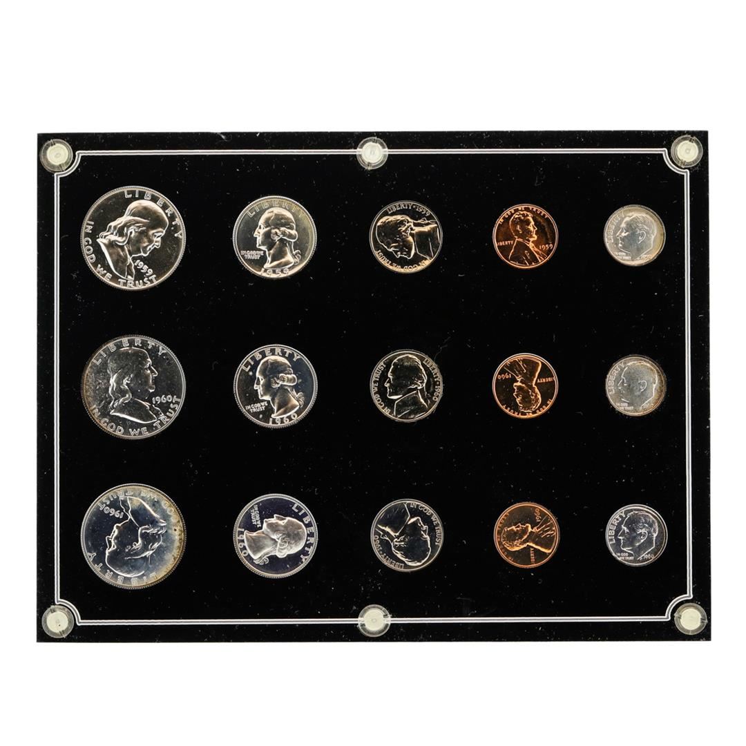 One Lot of 1959 & 1960 Small & Large Date (5) Coin Proof Sets.