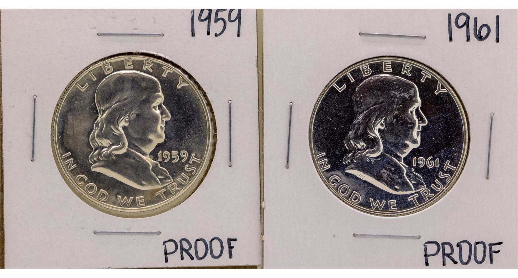 One Lot of 1959 & 1961 Franklin Half Dollar Proof Coins.