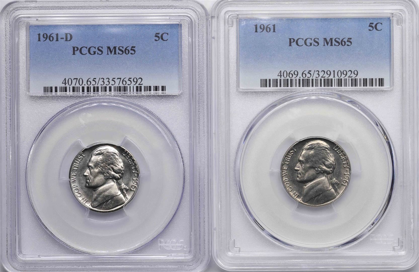 One Lot of 1961 & 1961-D Jefferson Nickel Coins PCGS MS65. PCGS Graded.