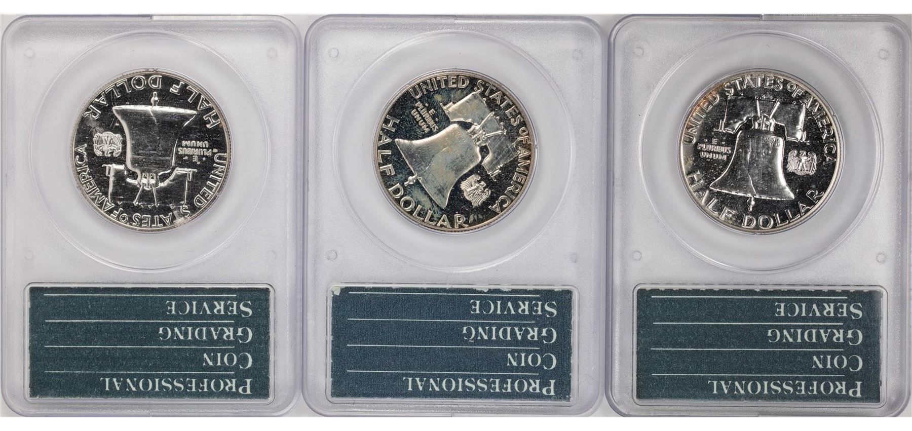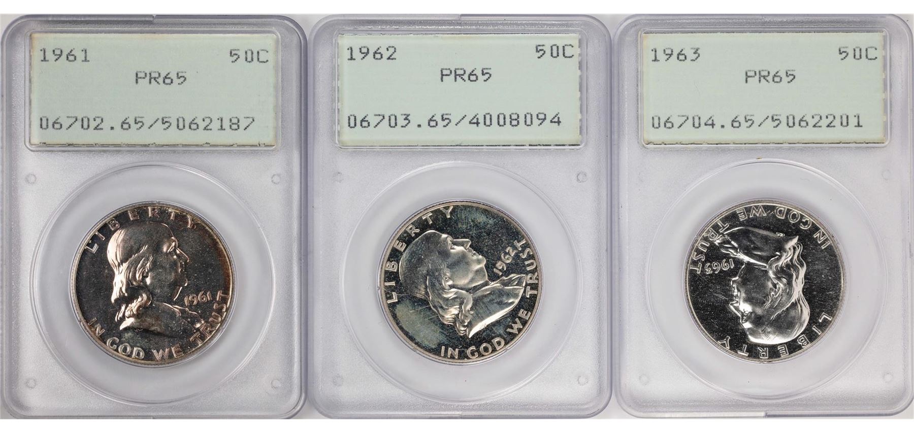 Lot of 1961-1963 Proof Franklin Half Dollar Coins PCGS PR65 Old Green Rattlers