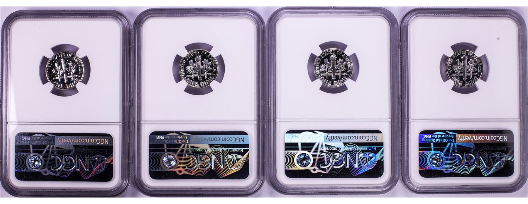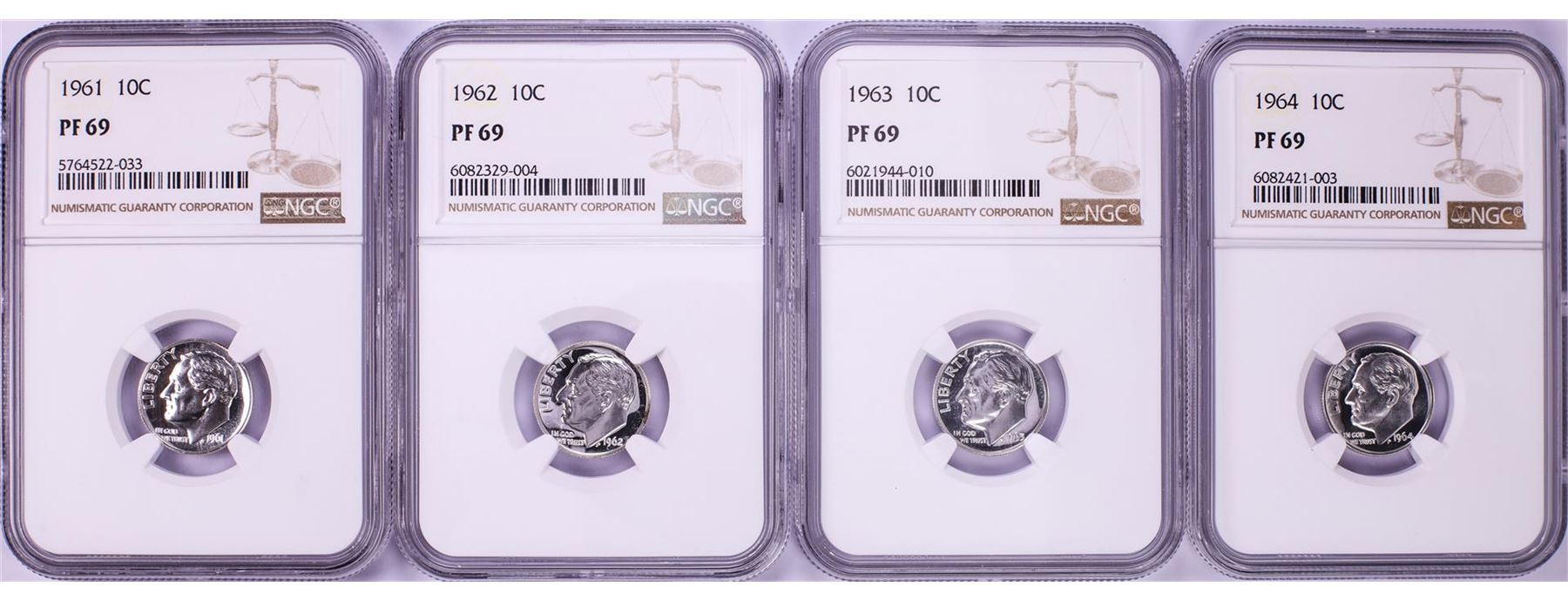 One Lot of 1961-1964 Proof Roosevelt Dime Coins NGC PF69. NGC Certified.