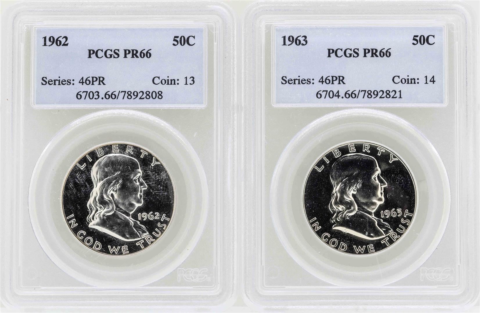One Lot of 1962-1963 Franklin Half Dollar Proof Coins PCGS PR66. PCGS Graded.