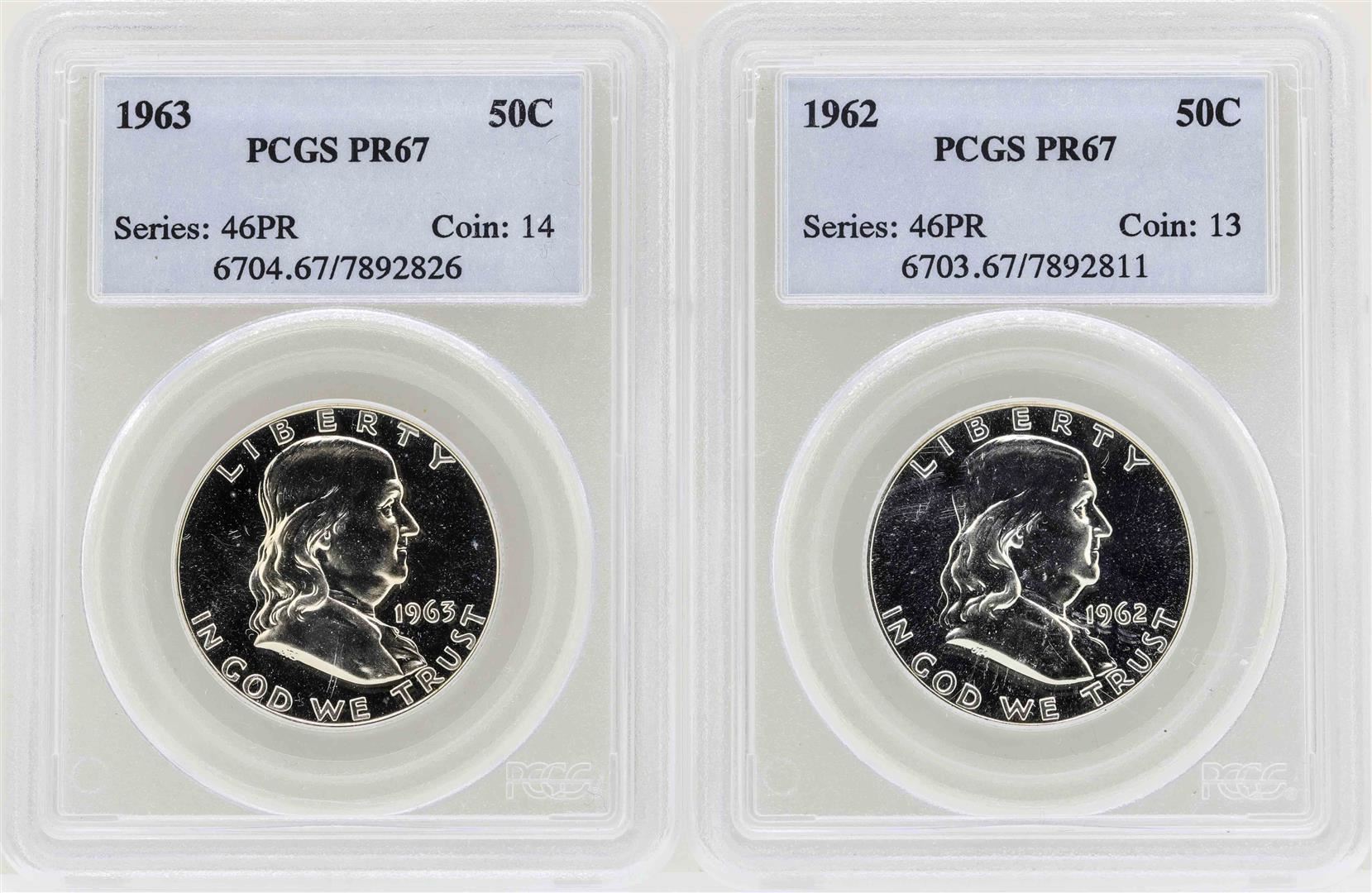 One Lot of 1962-1963 Franklin Half Dollar Proof Coins PCGS PR67. PCGS Graded.