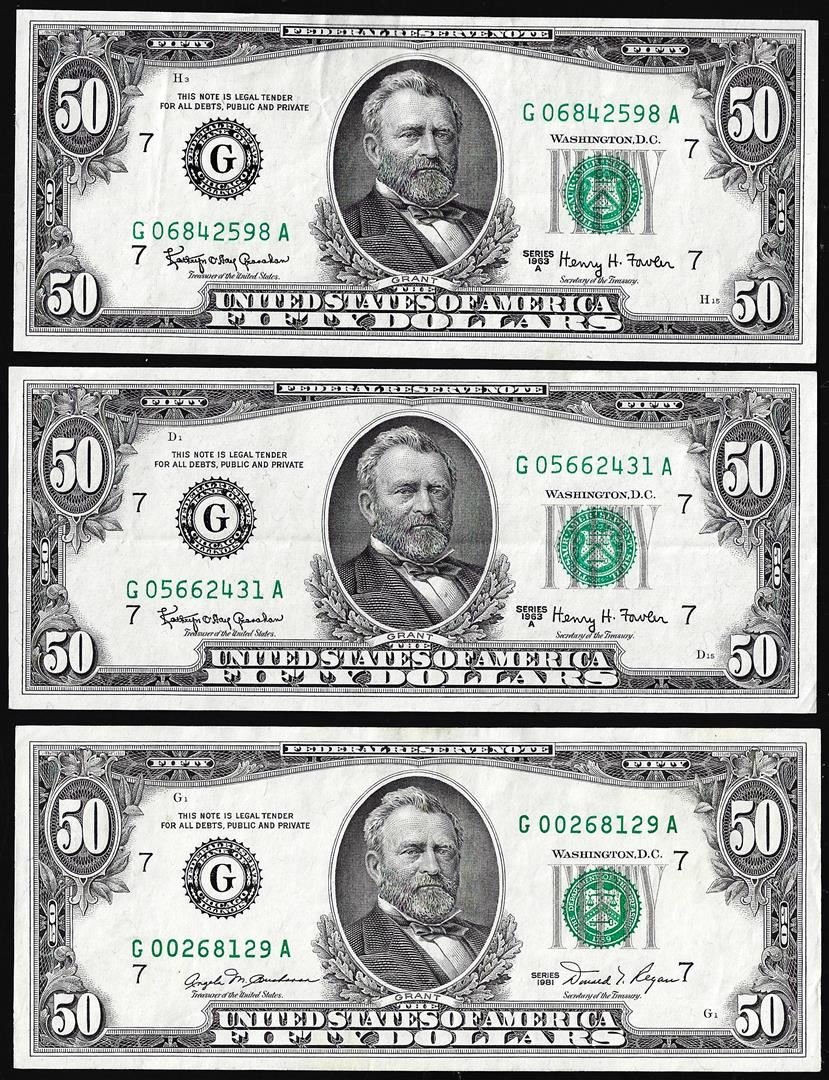 Lot of 1963A & 1981 $50 Federal Reserve Notes Chicago