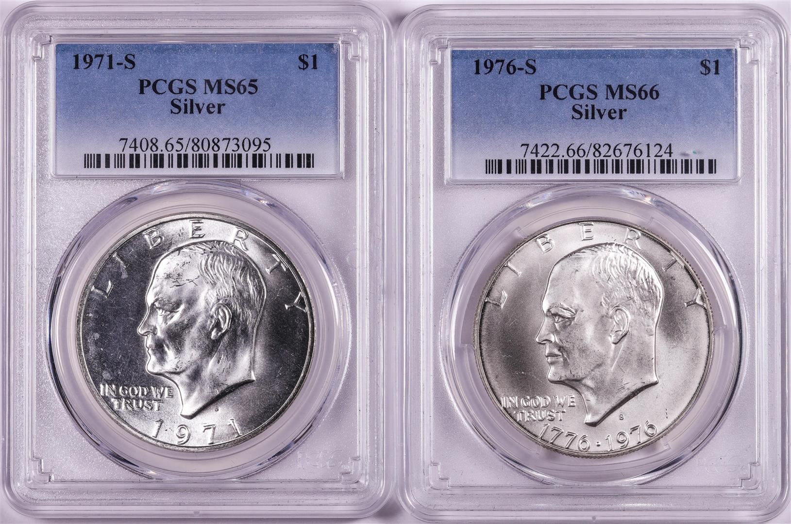 One Lot of 1971-S & 1976-S $1 Eisenhower Silver Dollar Coins NGC MS65/MS66. NGC Certified.