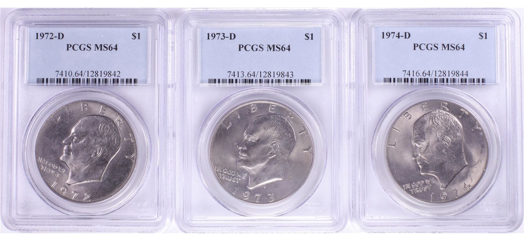 Lot of 1972-D to 1974-D $1 Eisenhower Silver Dollar Coins PCGS MS64