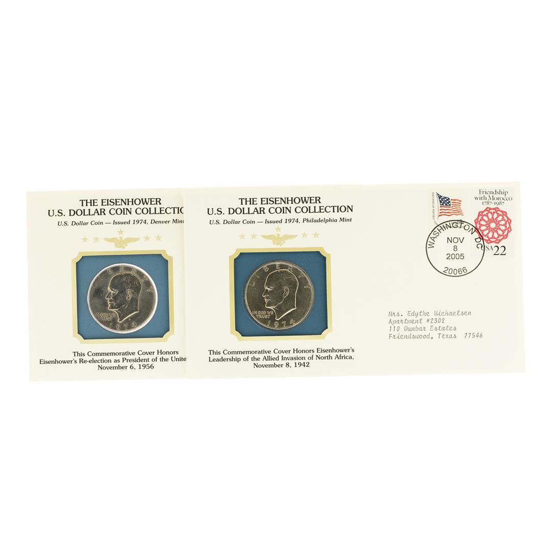 One Lot of 1974 & 1974-D Eisenhower Dollars Collection Coin Cover & Stamp.