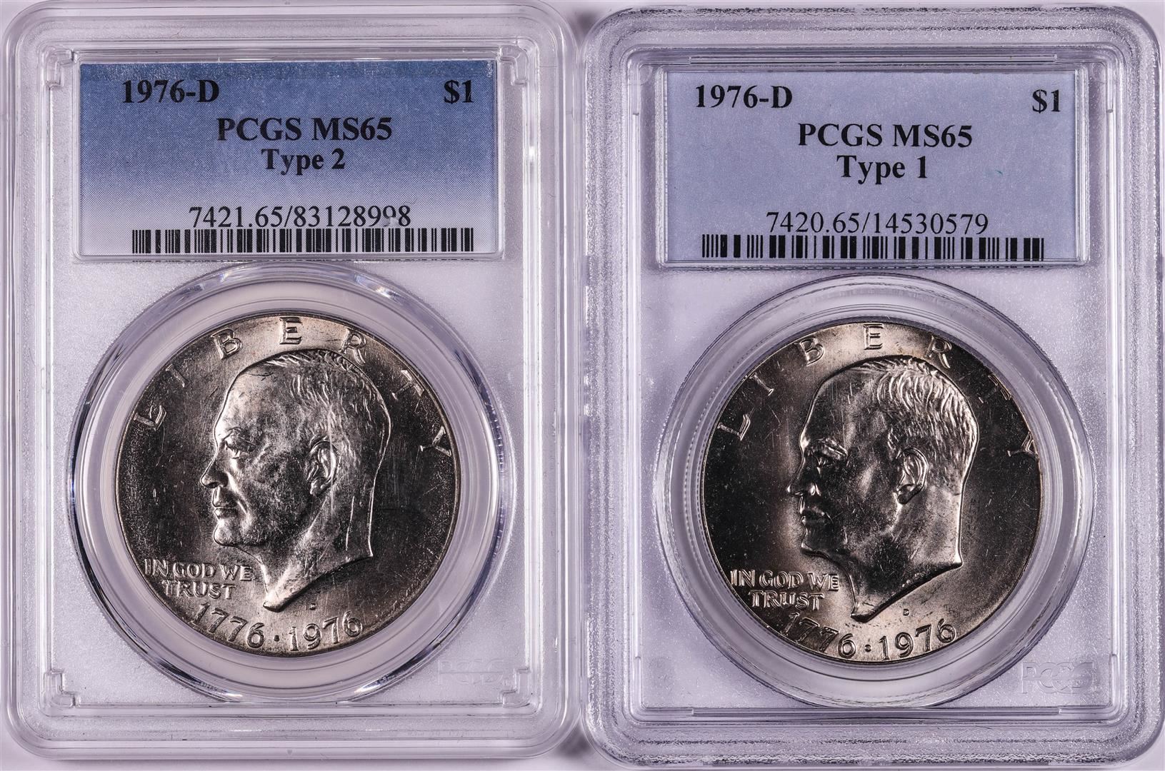 Lot of 1976-D Type 1 & Type 2 $1 Eisenhower Dollar Coins PCGS MS65