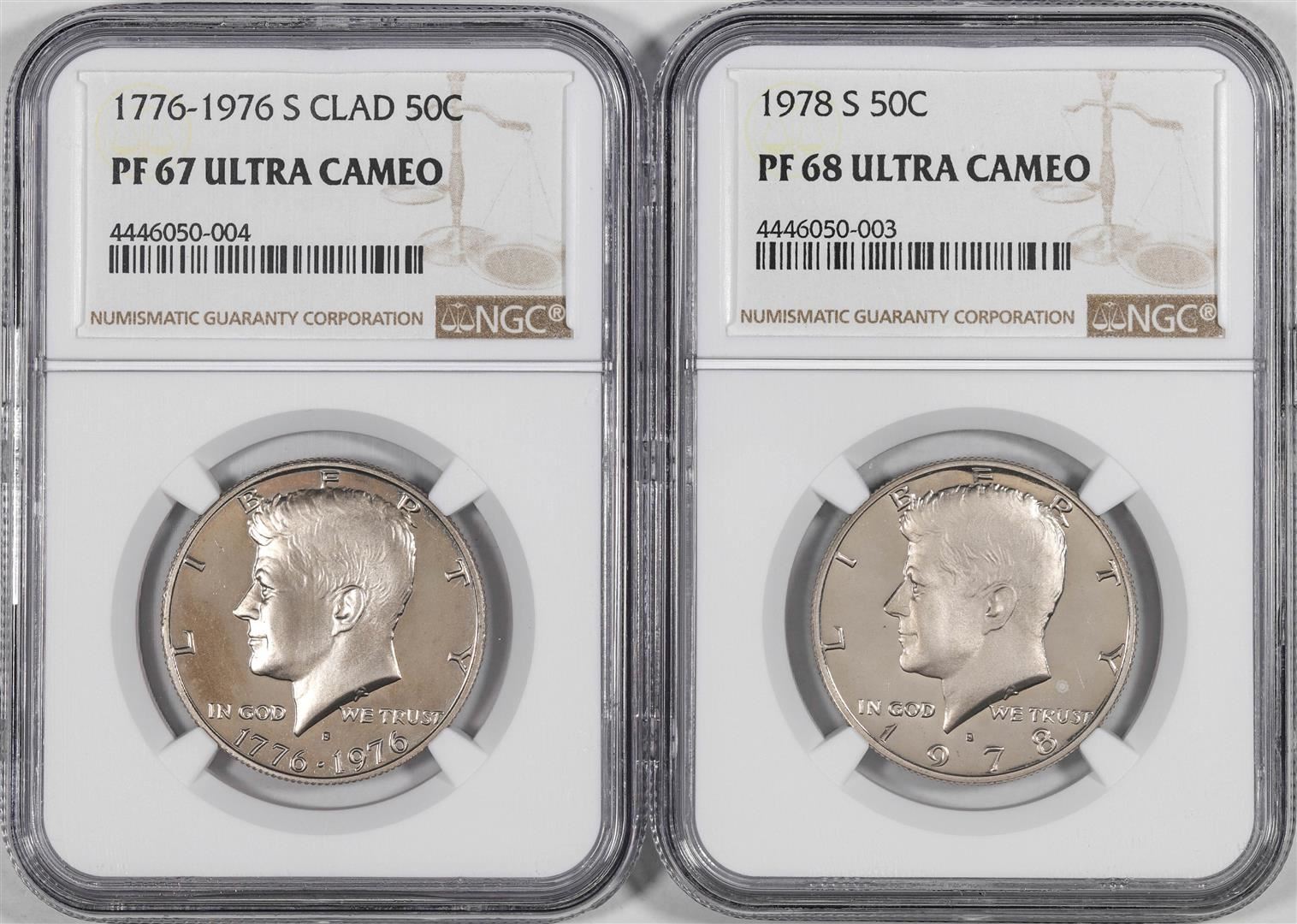 One Lot of 1976-S & 1978-S Proof Kennedy Half Dollar Coins NGC PF67/68 Ultra Cameo. NGC Certified.