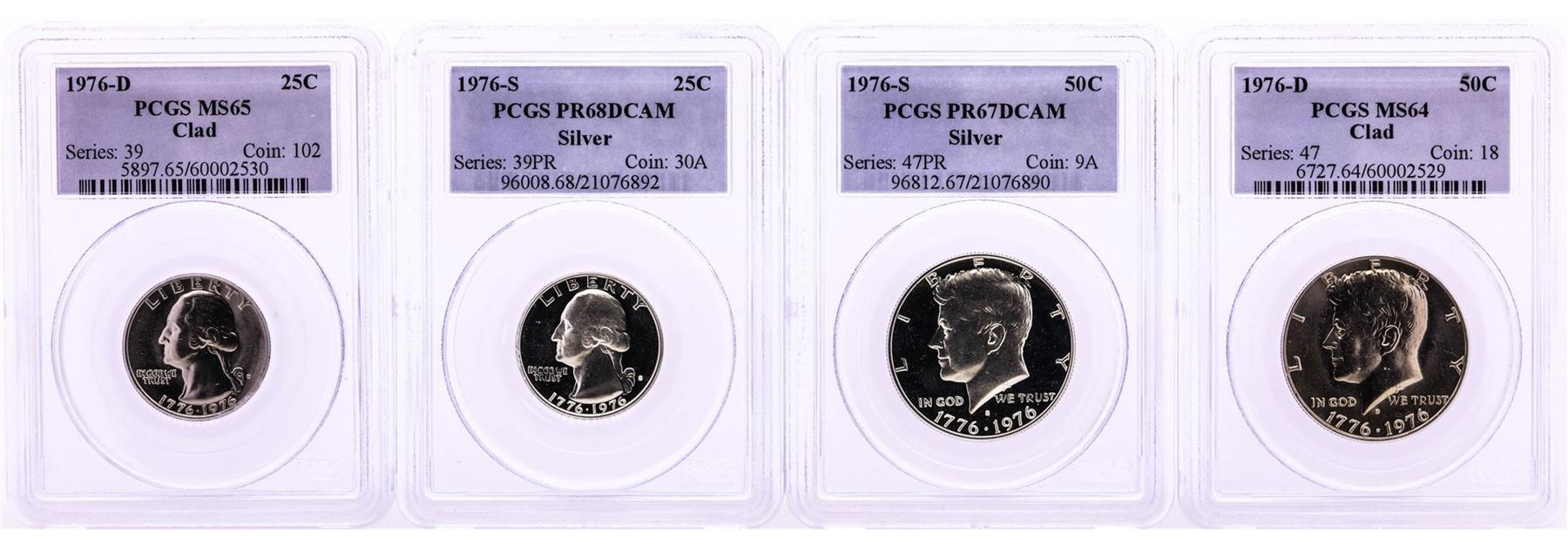 Lot of 1976 Washington Quarter & Kennedy Half Dollar Coins PCGS MS64/65 & PR67/68DCAM
