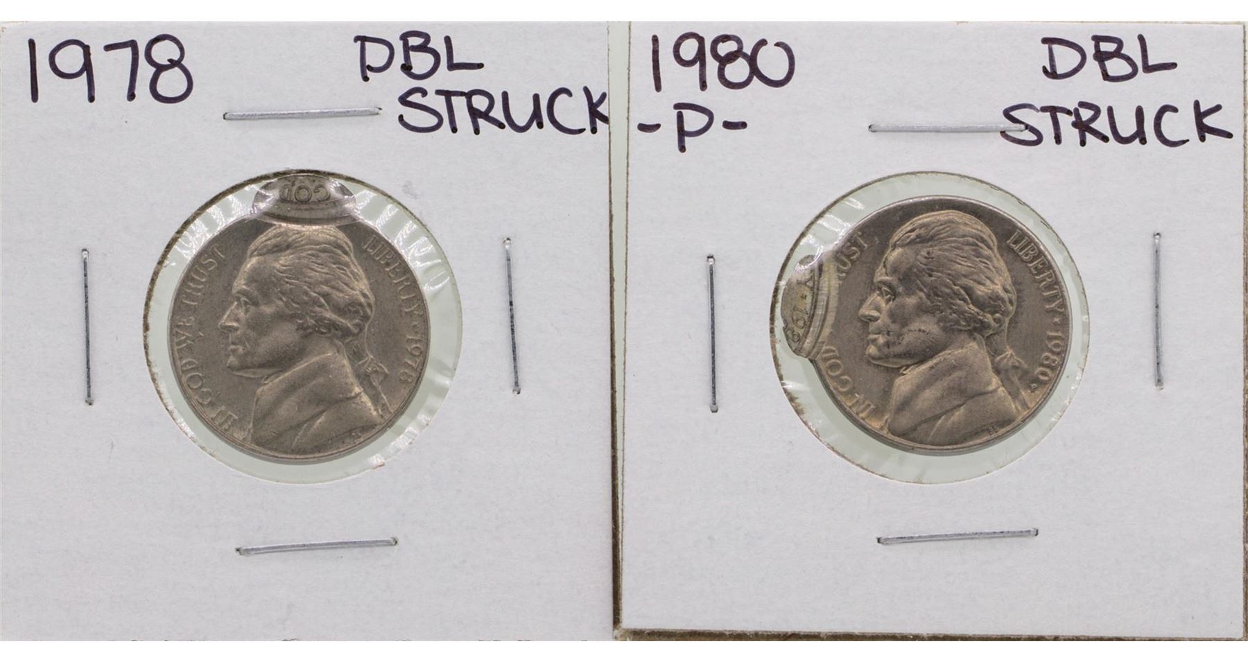 Lot of 1978 Double Struck Jefferson Nickel & 1980-P Double Struck Nickel ERROR C