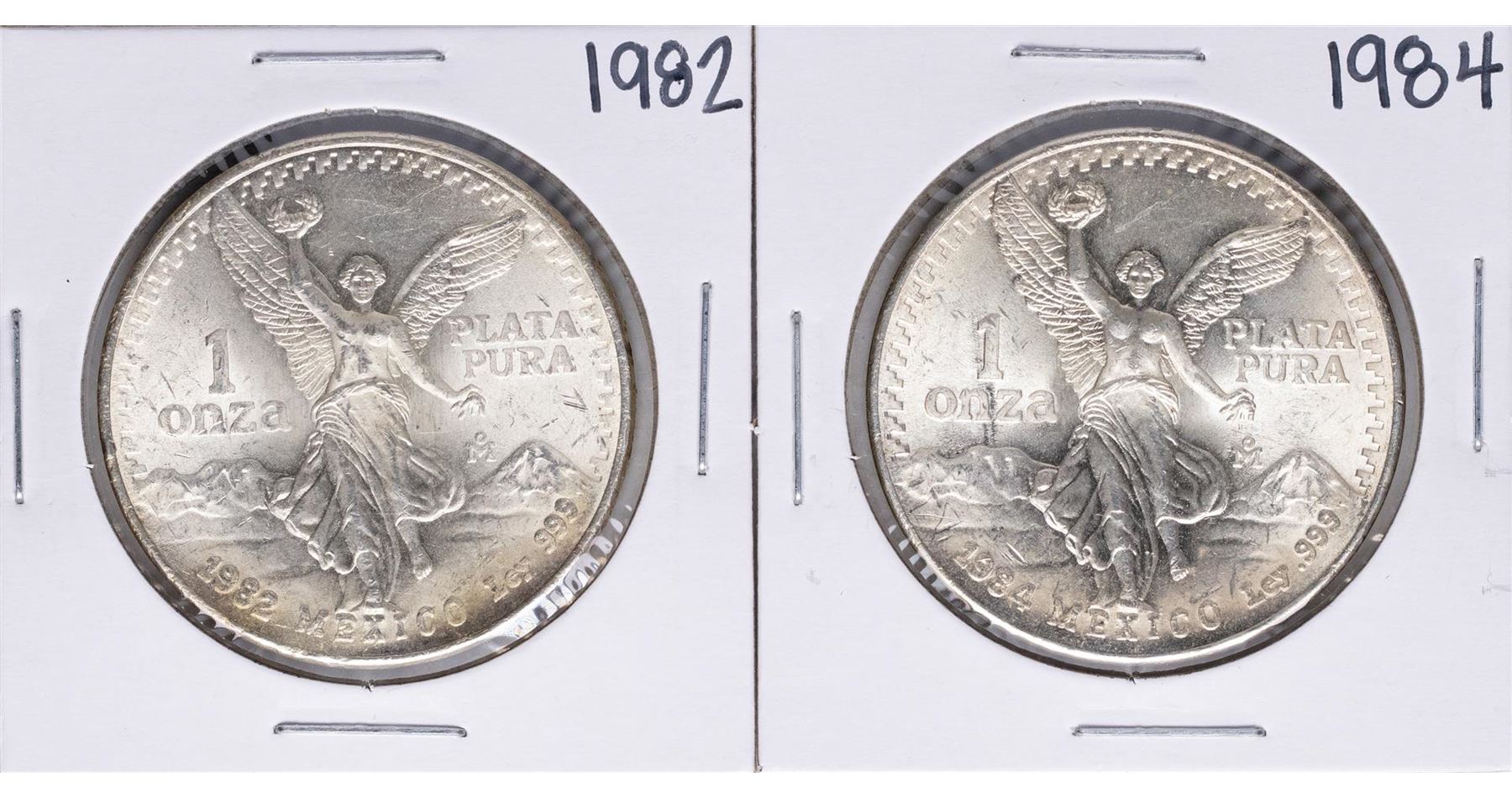 One Lot of 1982 & 1984 Mexico Onza Libertad Silver Coins.