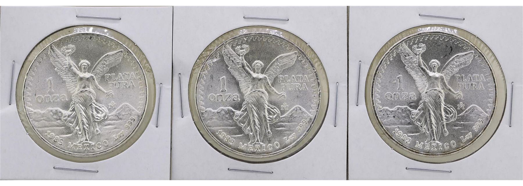 One Lot of 1982Mo/1983Mo/1985Mo Mexico Silver Libertad Coins.