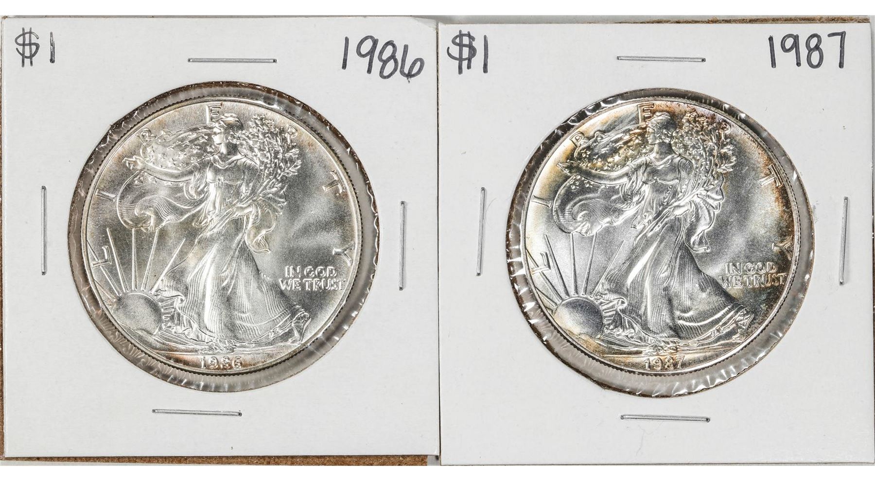 One Lot of 1986-1987 $1 American Silver Eagle Coins.