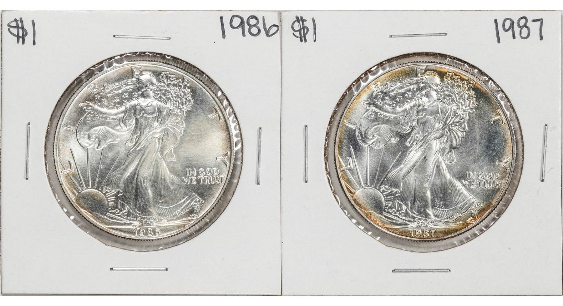 One Lot of 1986-1987 $1 American Silver Eagle Coins.