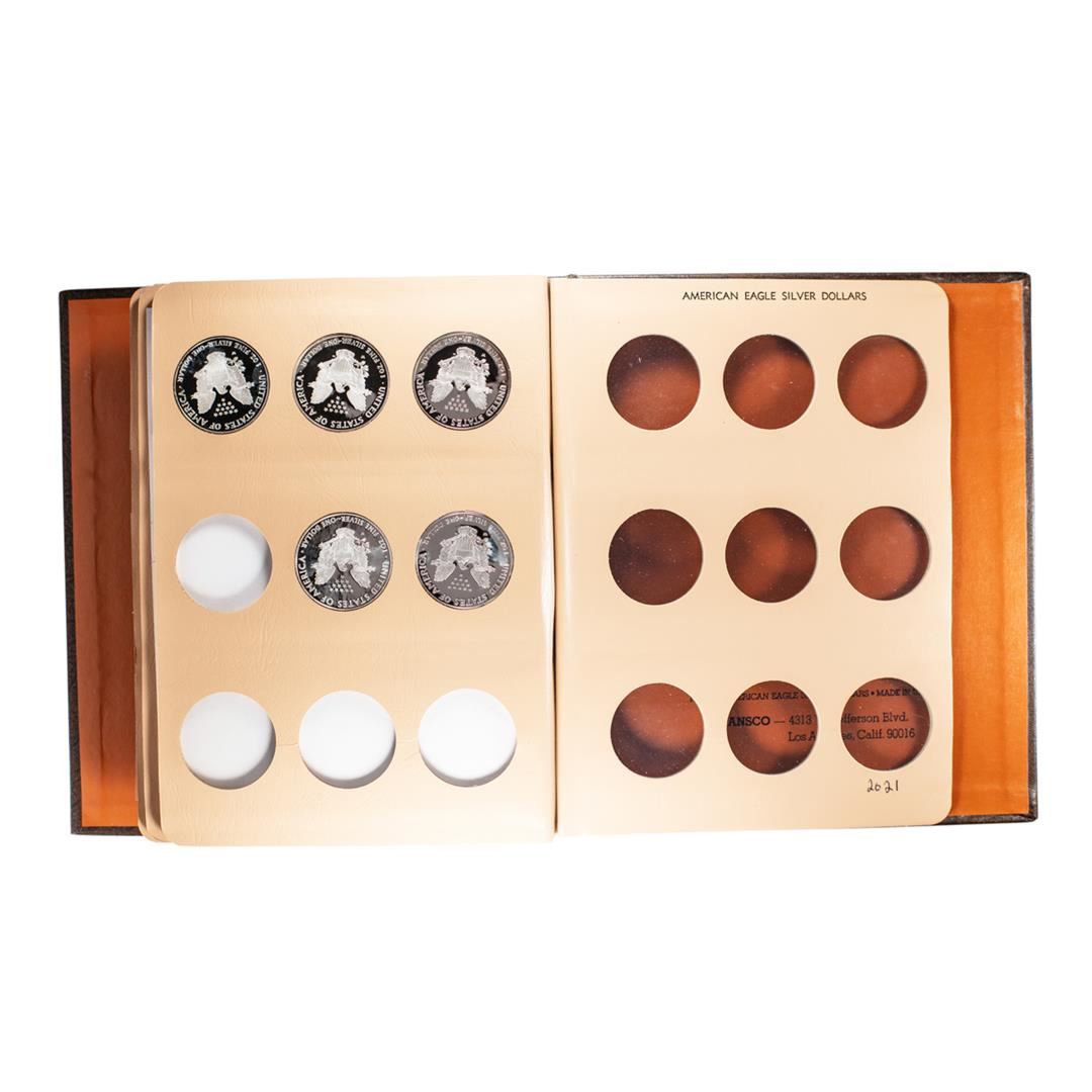 One Lot of 1986-2008 $1 Proof American Silver Eagle Coins in Dansco Book.