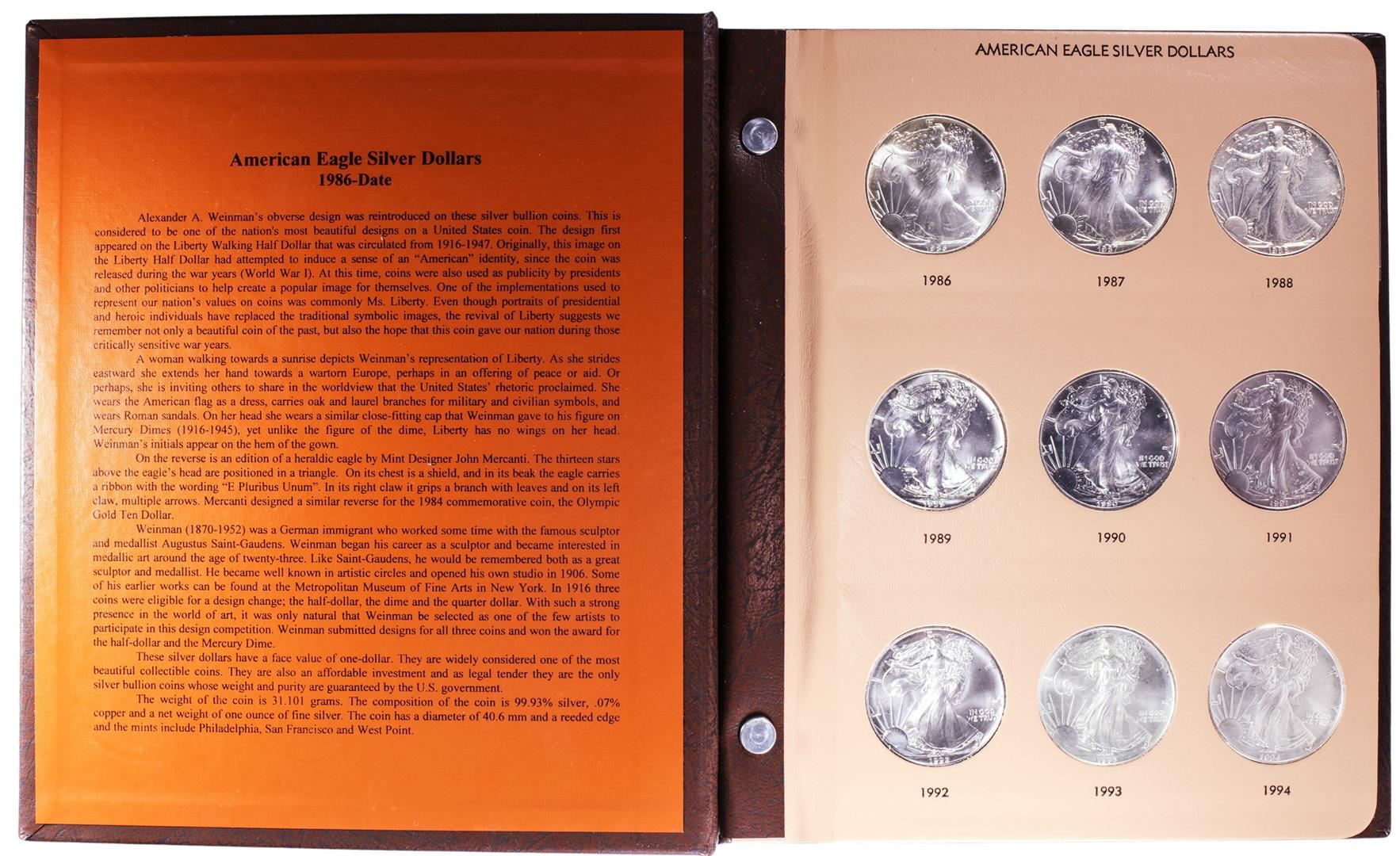 One Lot of 1986-2016 $1 American Silver Eagle Coins in Book.