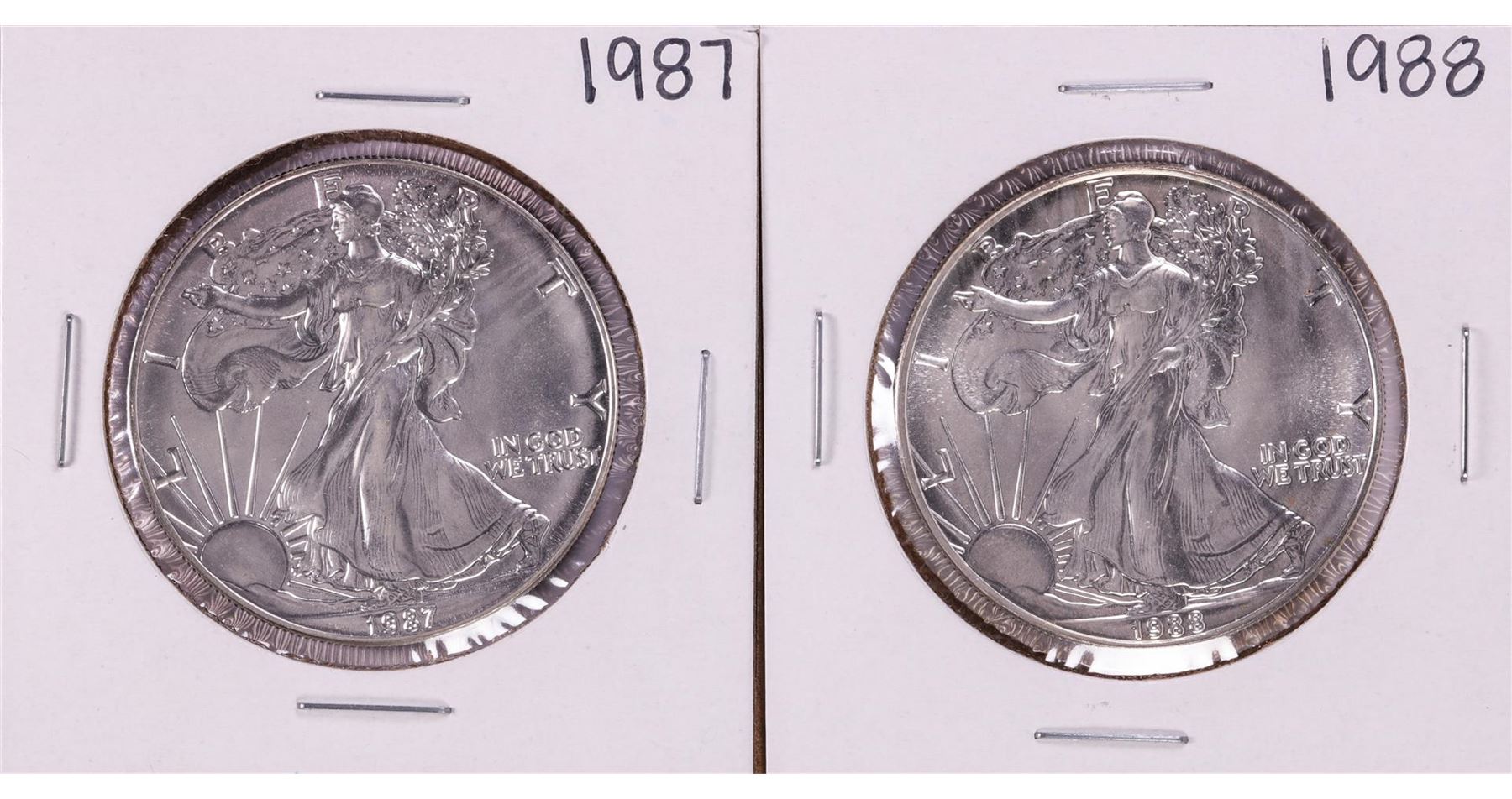 One Lot of 1987-1988 $1 American Silver Eagle Coins.