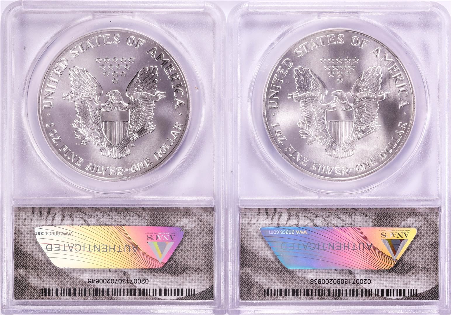 One Lot of 1992-1993 $1 American Silver Eagle Coins ANACS MS69. ANACS Certified.