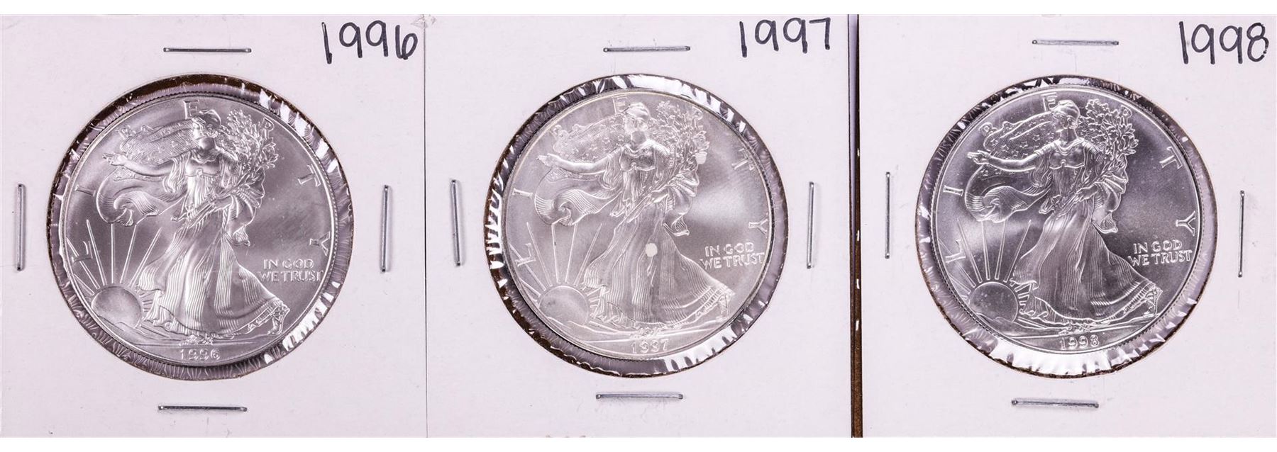 One Lot of 1996-1998 $1 American Silver Eagle Coins.