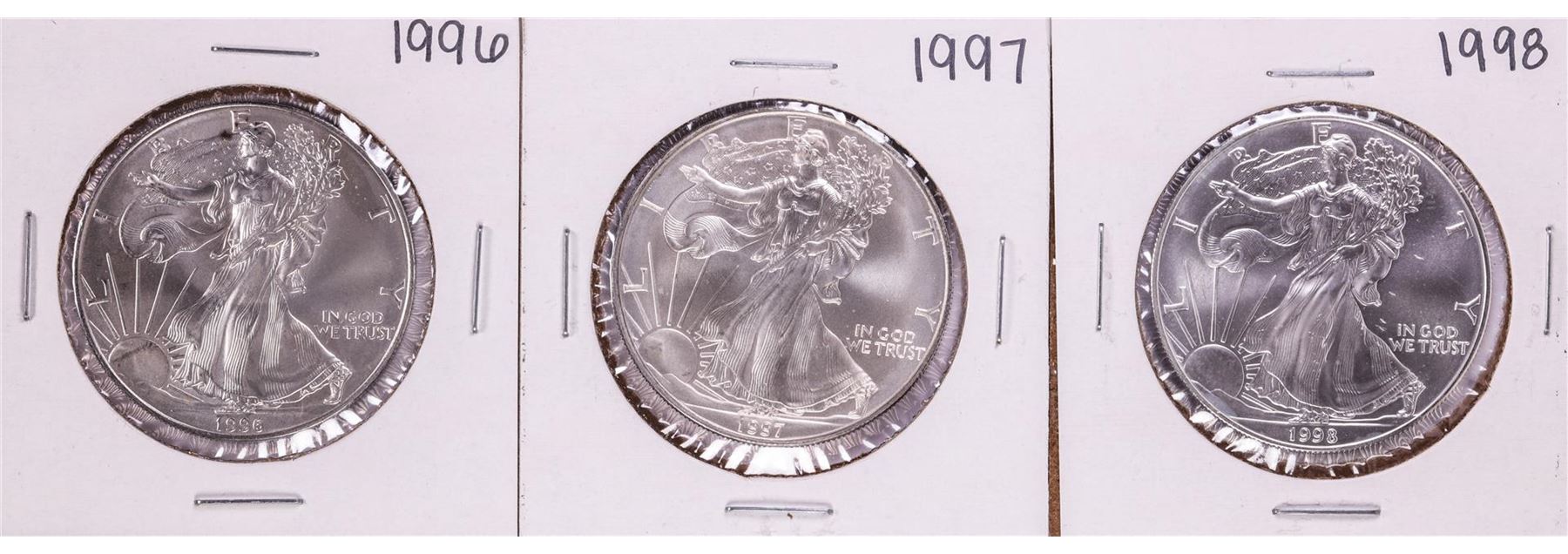 One Lot of 1996-1998 $1 American Silver Eagle Coins.