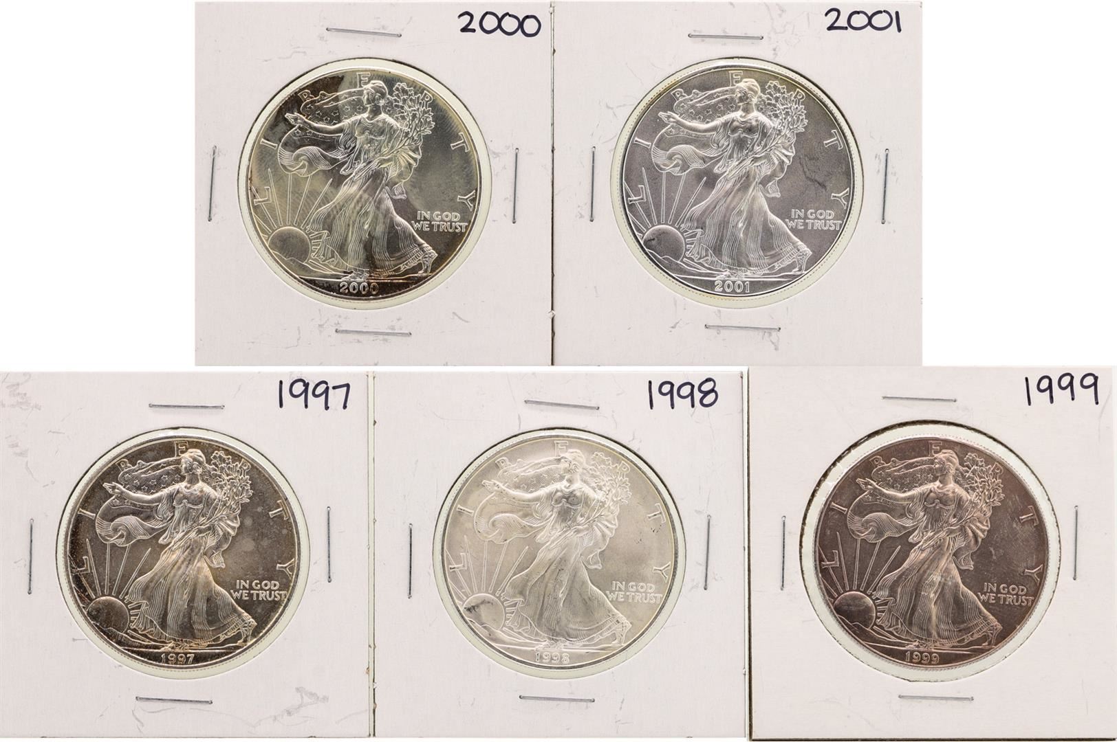 One Lot of 1997-2001 $1 American Silver Eagle Coins.