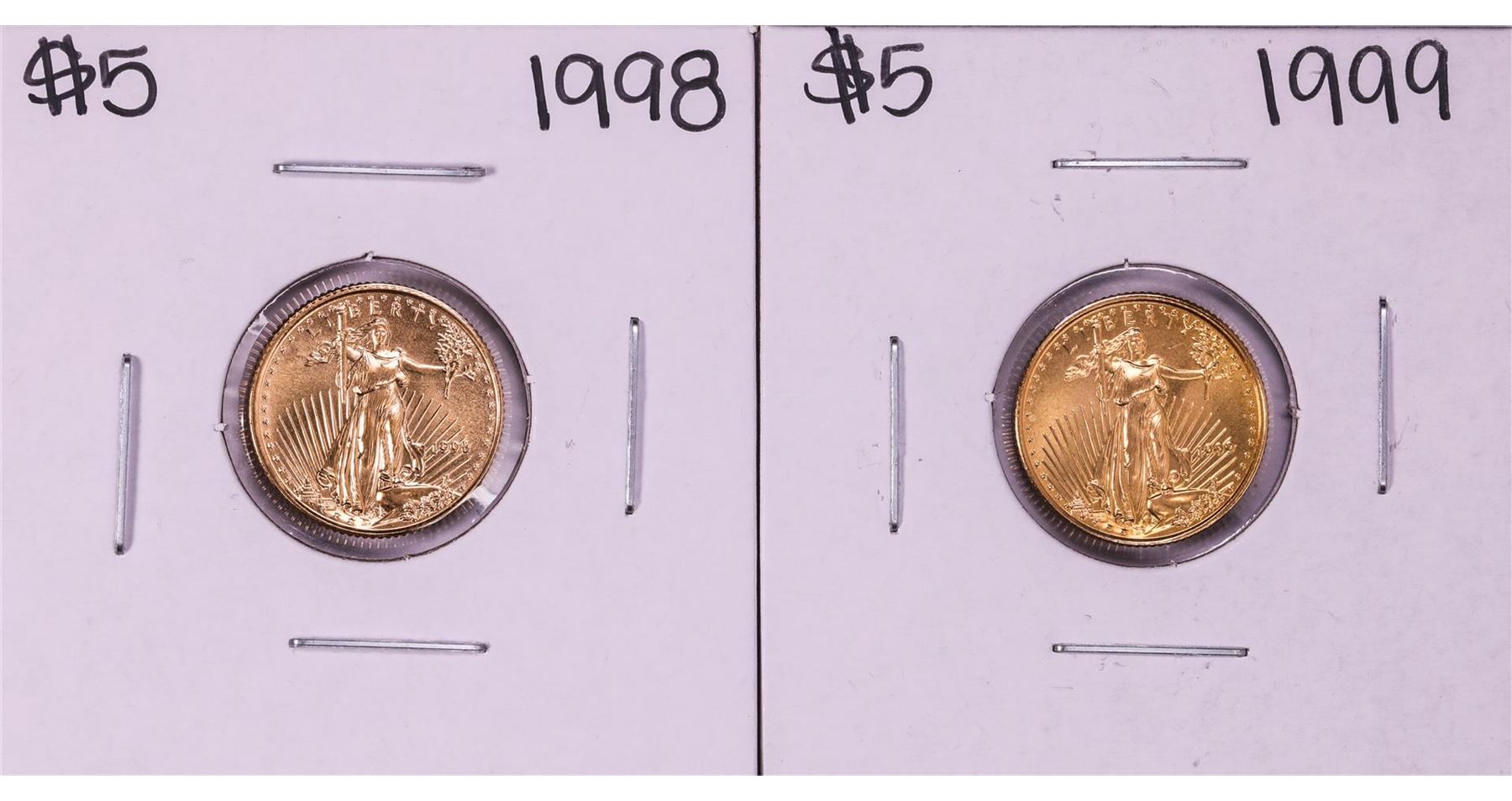 One Lot of 1998-1999 $5 American Gold Eagle Coins.