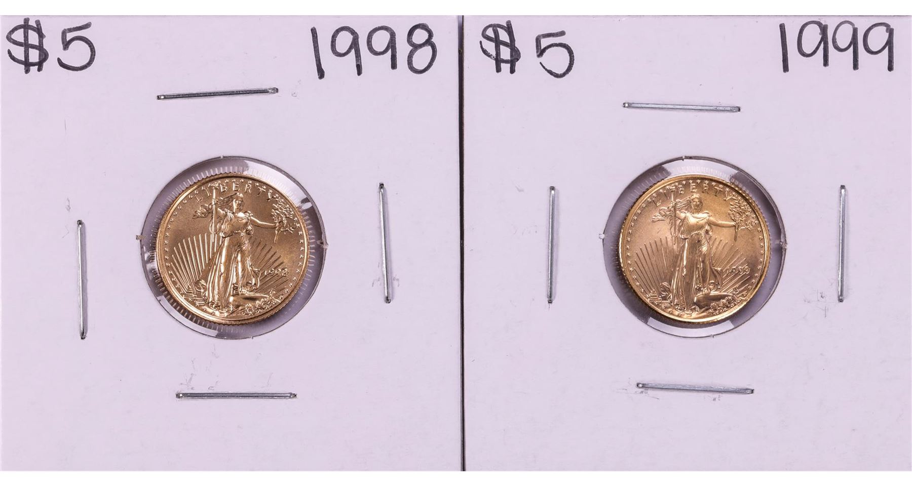 One Lot of 1998-1999 $5 American Gold Eagle Coins.