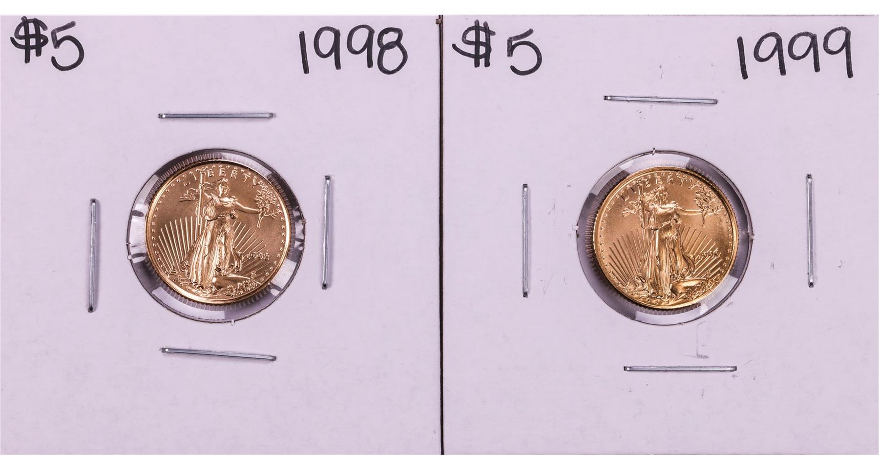 One Lot of 1998-1999 $5 American Gold Eagle Coins.