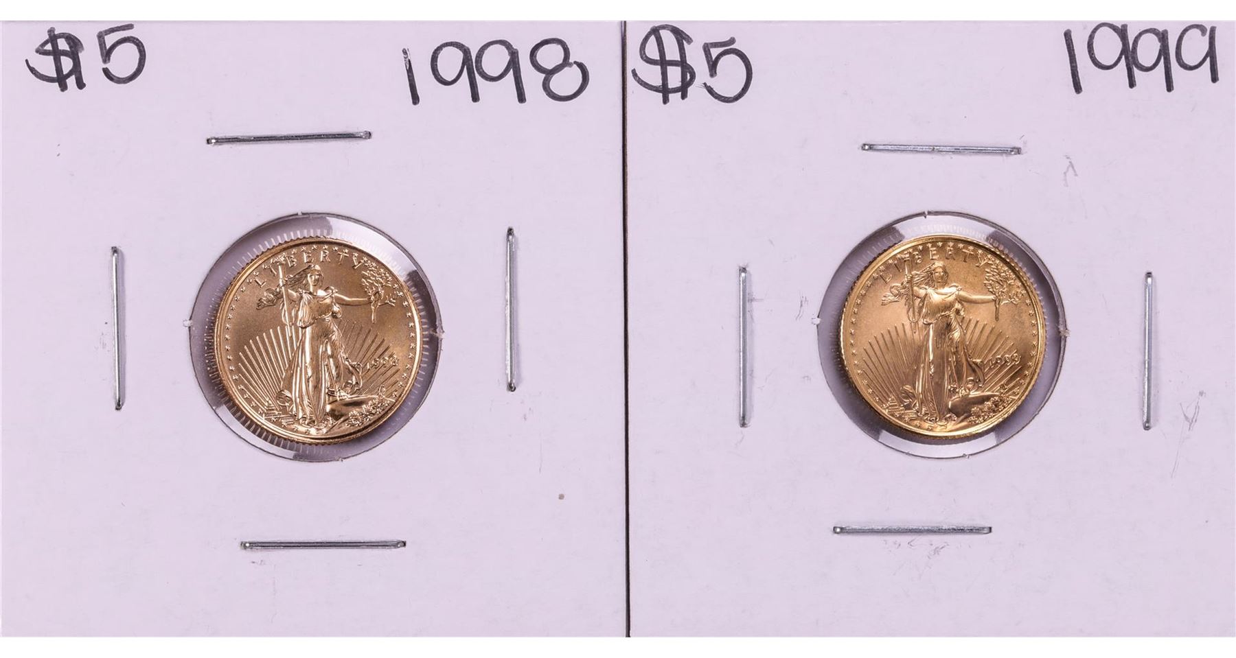 One Lot of 1998-1999 $5 American Gold Eagle Coins.