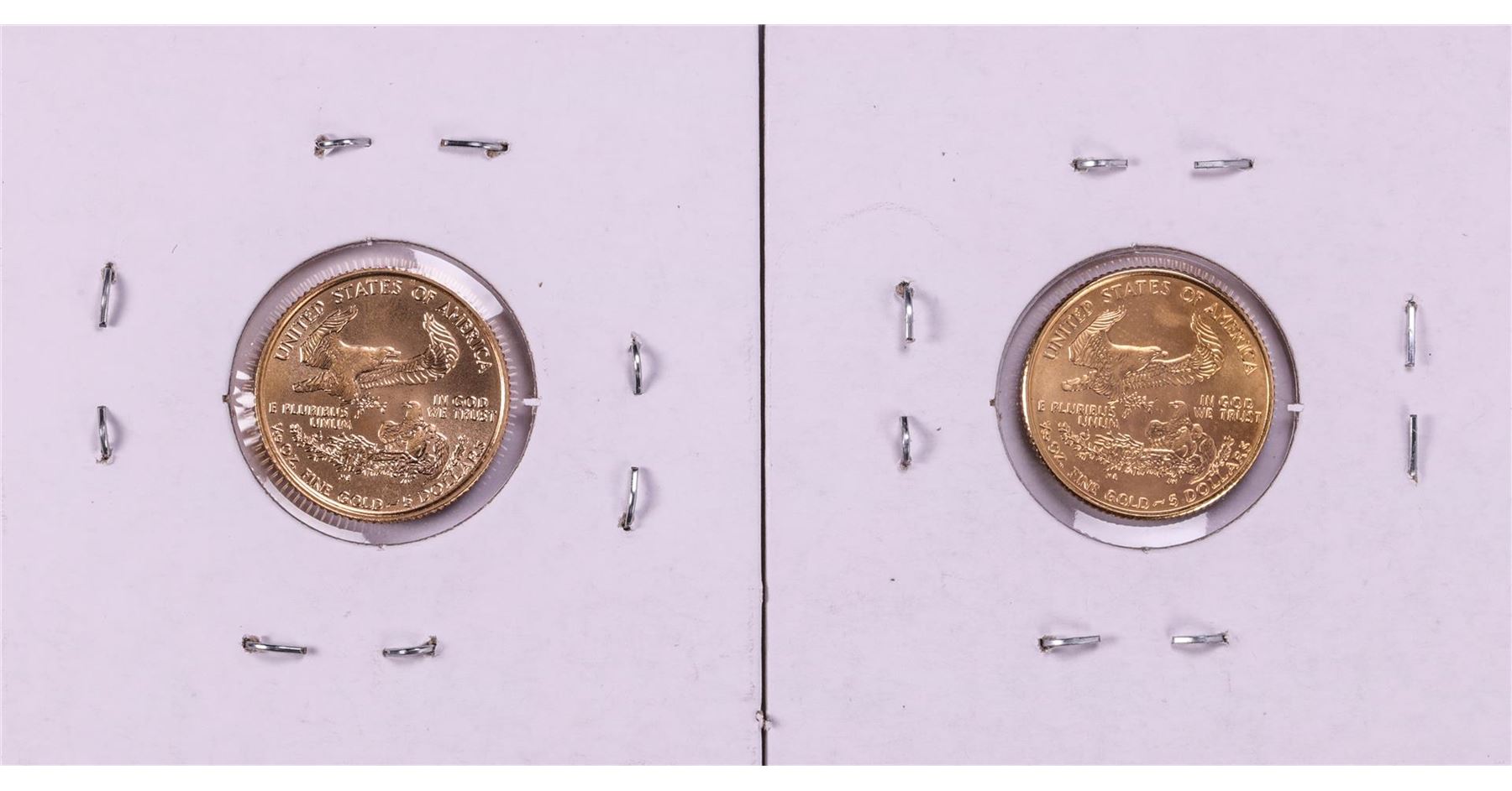 One Lot of 1998-1999 $5 American Gold Eagle Coins.