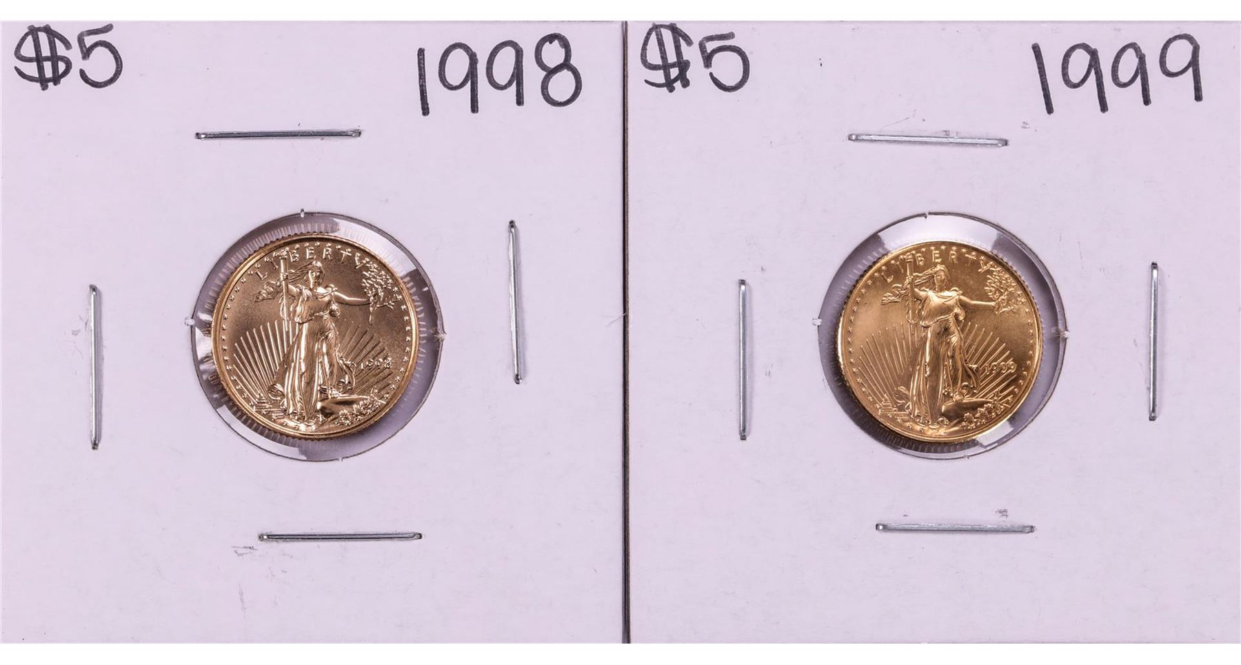 One Lot of 1998-1999 $5 American Gold Eagle Coins.