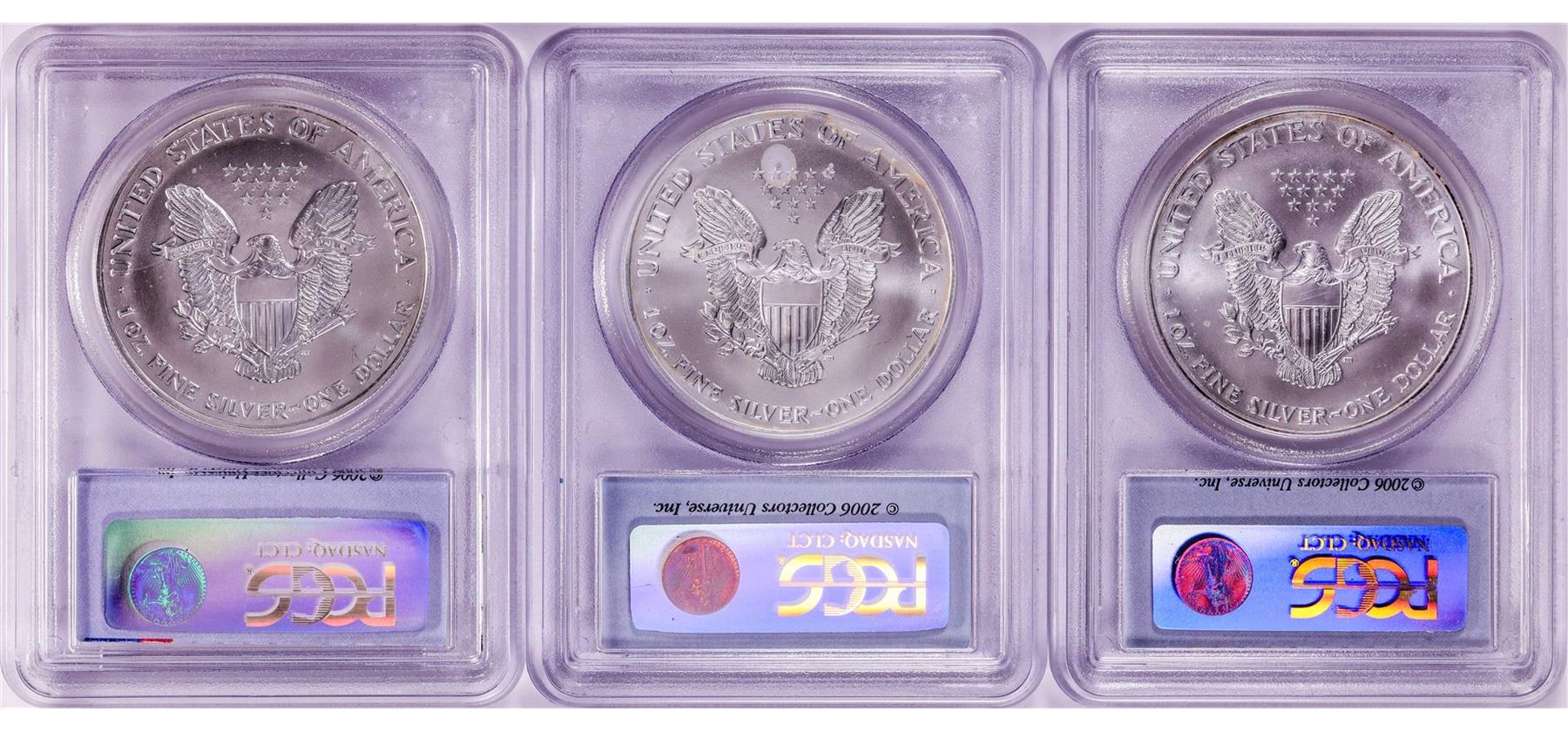 One Lot of 1999-2001 $1 American Silver Eagle Coins PCGS MS68 First Strike. PCGS Graded.