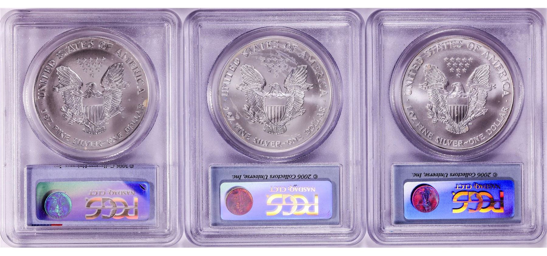One Lot of 1999-2001 $1 American Silver Eagle Coins PCGS MS68 First Strike. PCGS Graded.