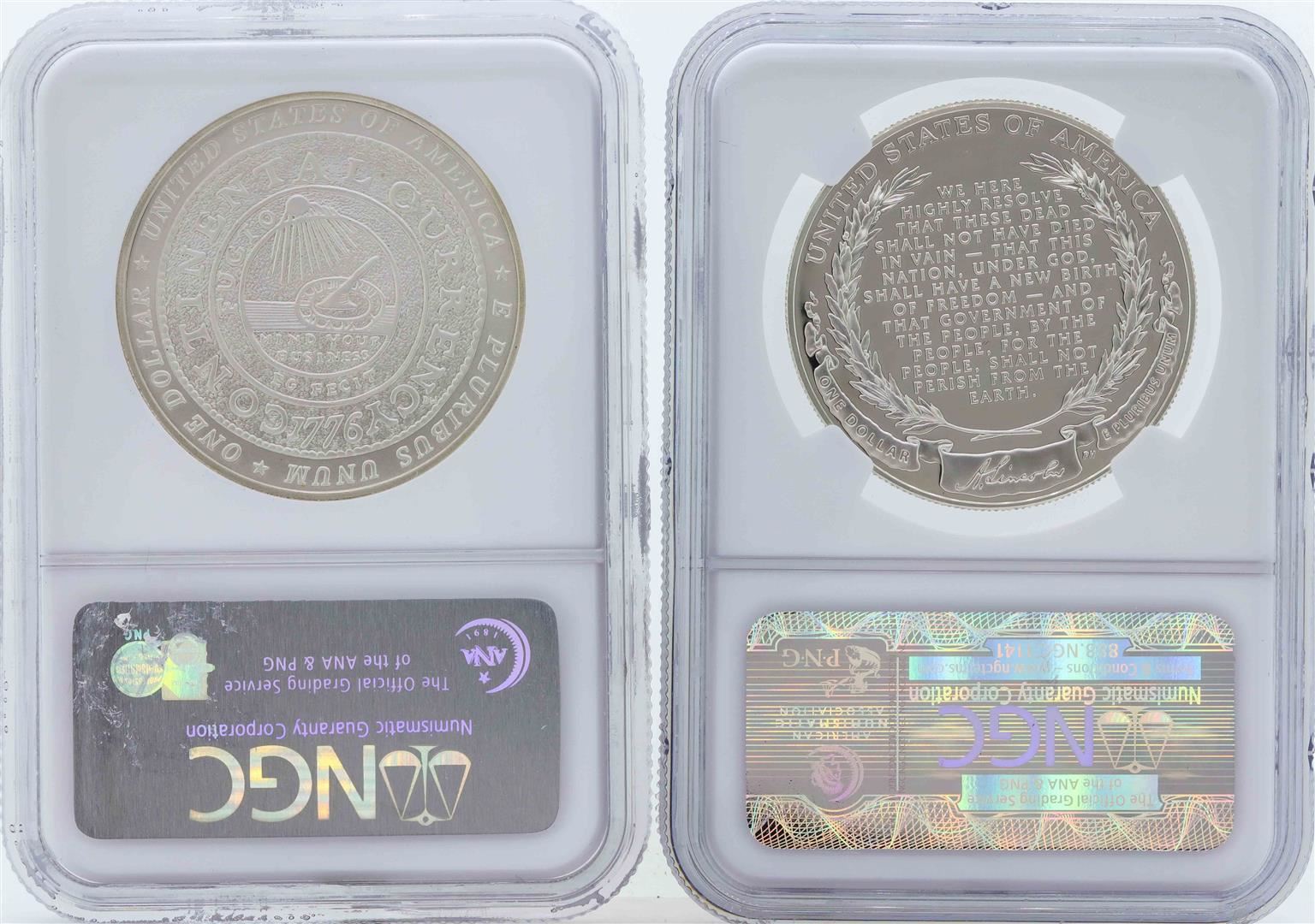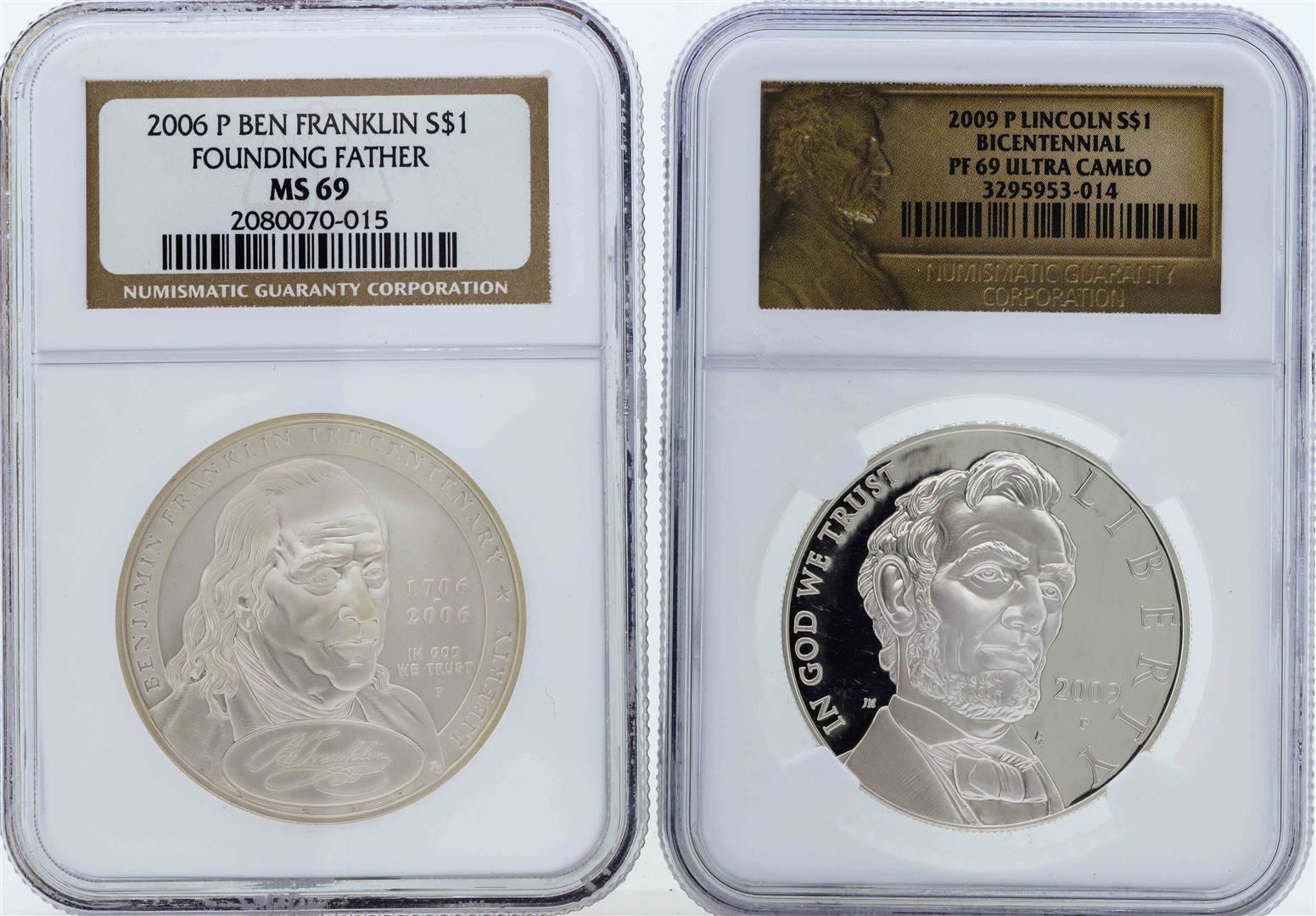 One Lot of (2) $1 Silver Dollar Commemorative Coins NGC Graded. NGC Certified.