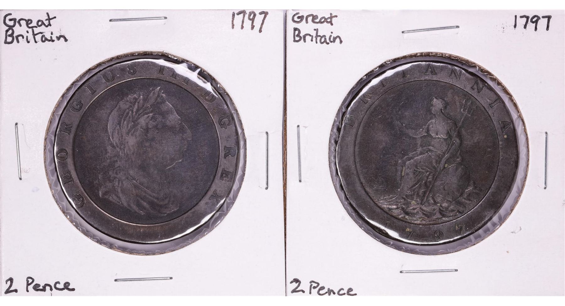 One Lot of (2) 1797 Great Britain 2 Pence Coins.