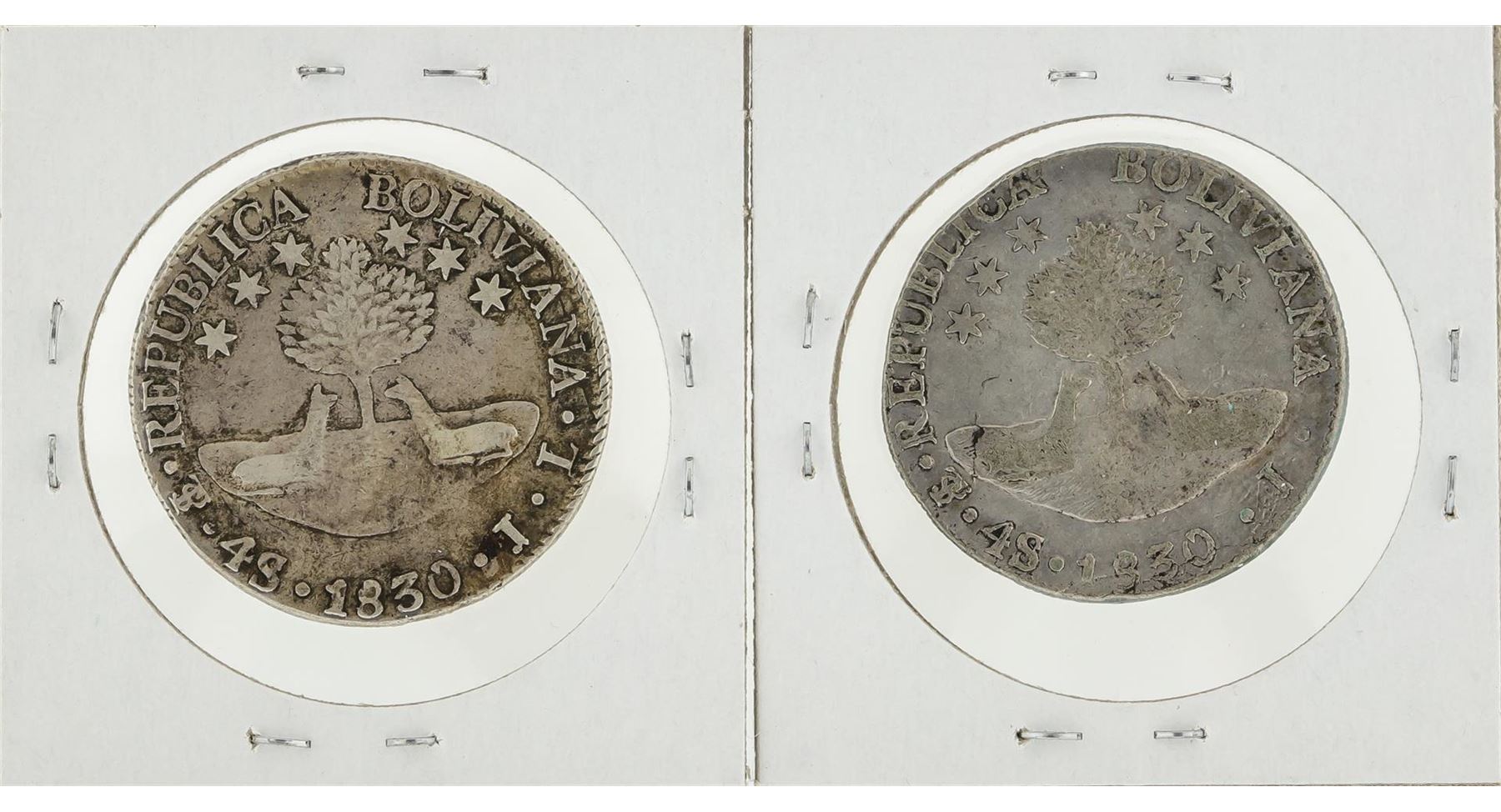 One Lot of (2) 1804 Bolivia 4 Soles Silver Coins.
