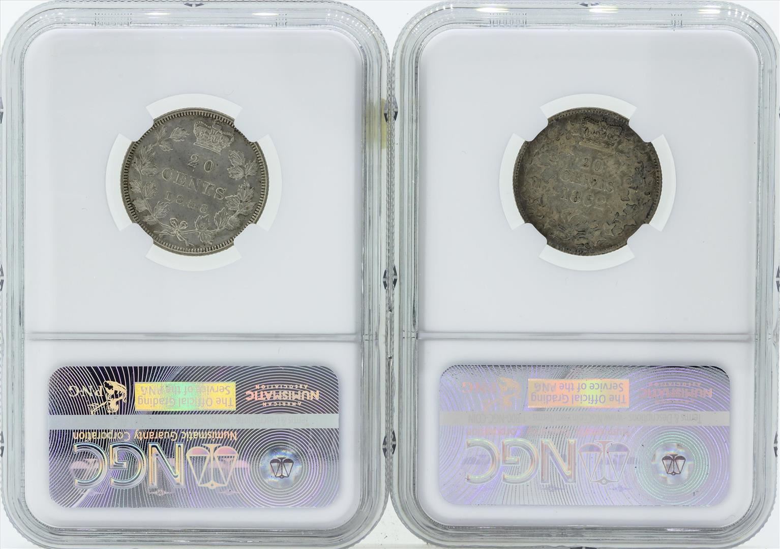 Lot of (2) 1858 Canada 20 Cent Coin NGC AU Details and 1862 New Bruns. 20 Cent C