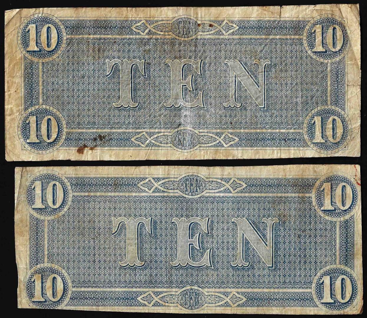 Lot of (2) 1864 $10 Confederate States of America Notes