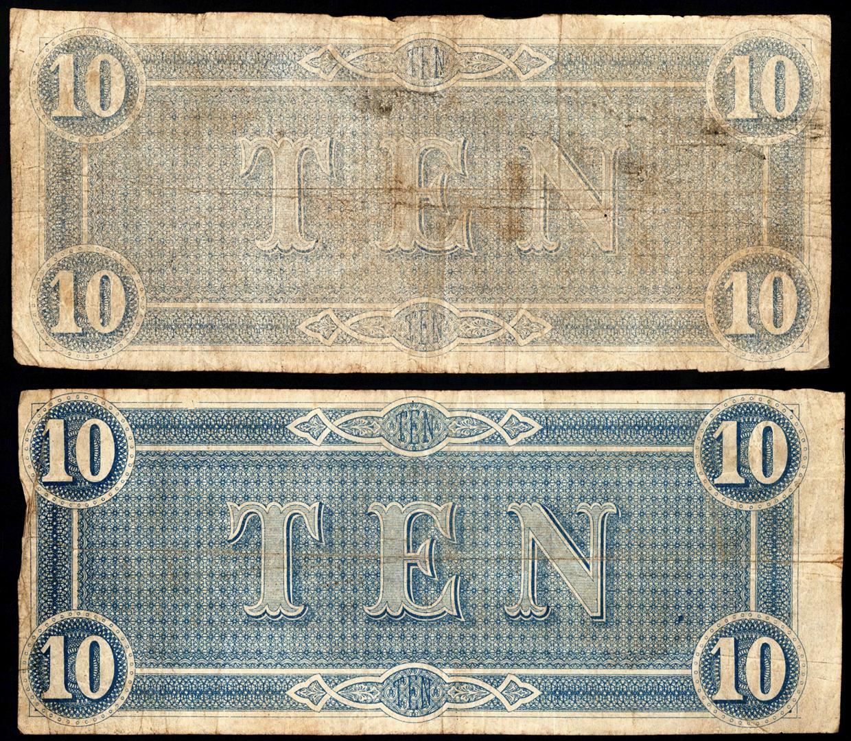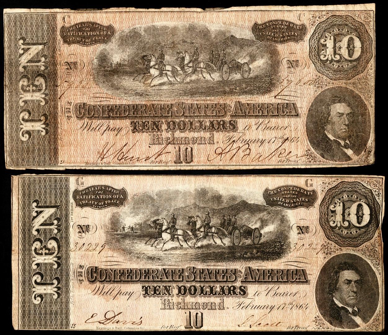 One Lot of (2) 1864 $10 Confederate States of America Notes.