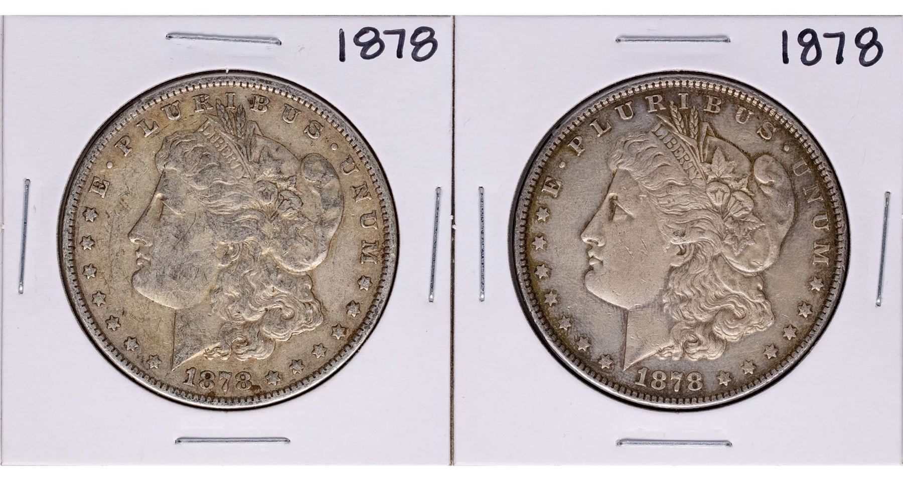 One Lot of (2) 1878 $1 Morgan Silver Dollar Coins.