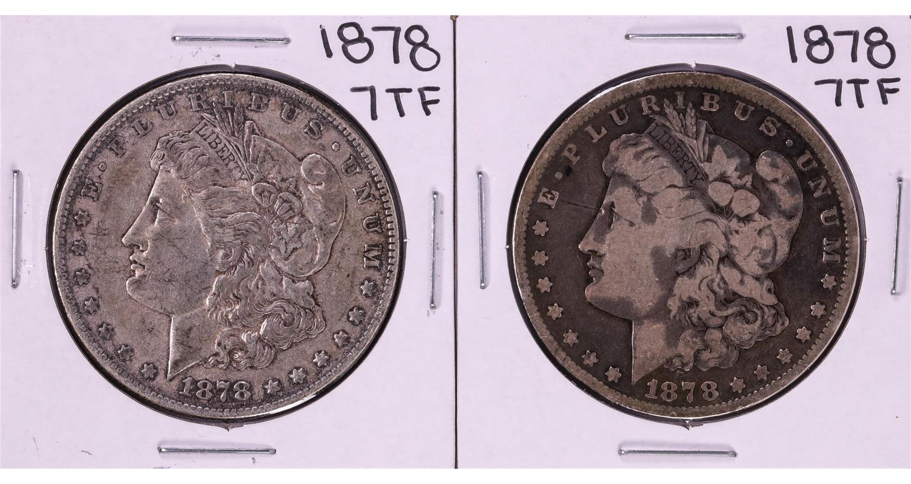 One Lot of (2) 1878 7TF $1 Morgan Silver Dollar Coins.